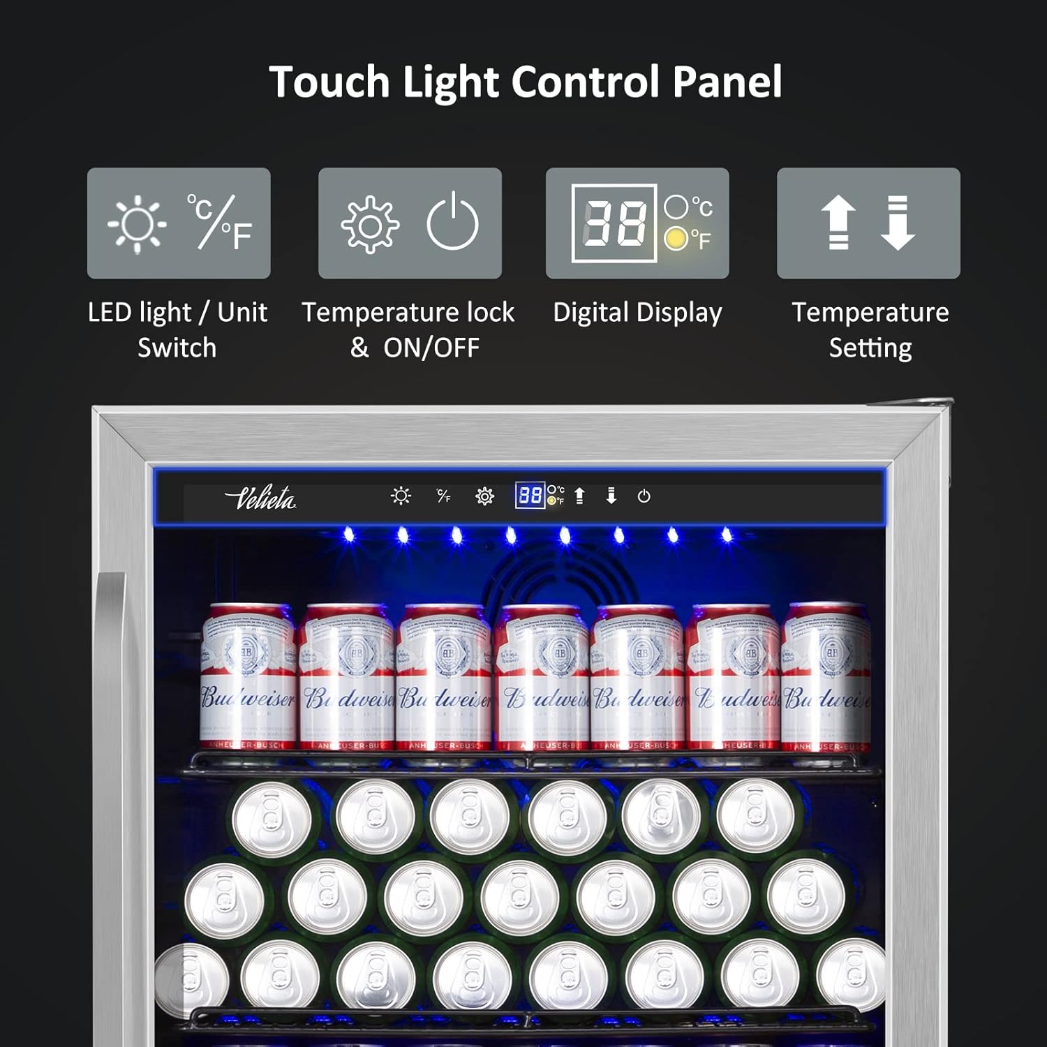 - 【Digital Display& Safety Lock】 The Large display and blue Led light help you operate conveniently and easily, you can choose your favorite drink easily even in dark. The beverage cooler is equipped with a safety door lock to protect your drinks and prevent accidental injury to kids.