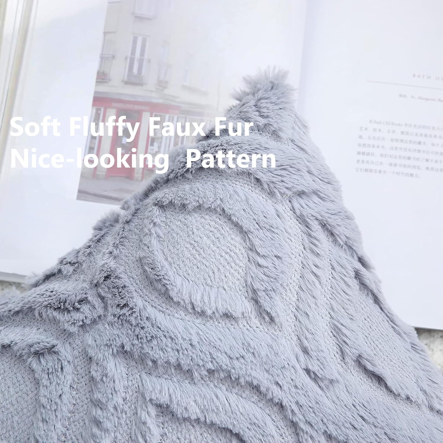 decorUhome Fall Throw Pillow Covers 12x20 Inch Set of 2, Soft Plush Decorative Faux Fur Blue Grey Solid Couch Pillow Covers, Accent Farmhouse Neutral Lumbar Euro Pillow Cases for Sofa Bed Living Room