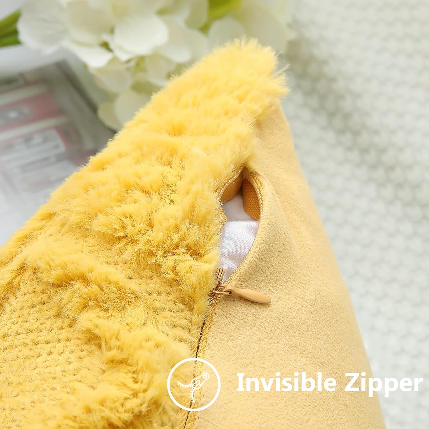decorUhome Throw Pillow Covers 24x24 Inch Set of 2, Soft Plush Decorative Faux Fur Mustard Yellow Solid Couch Pillow Covers, Accent Farmhouse Neutral Square Euro Pillow Cases for Sofa Bed Living Room