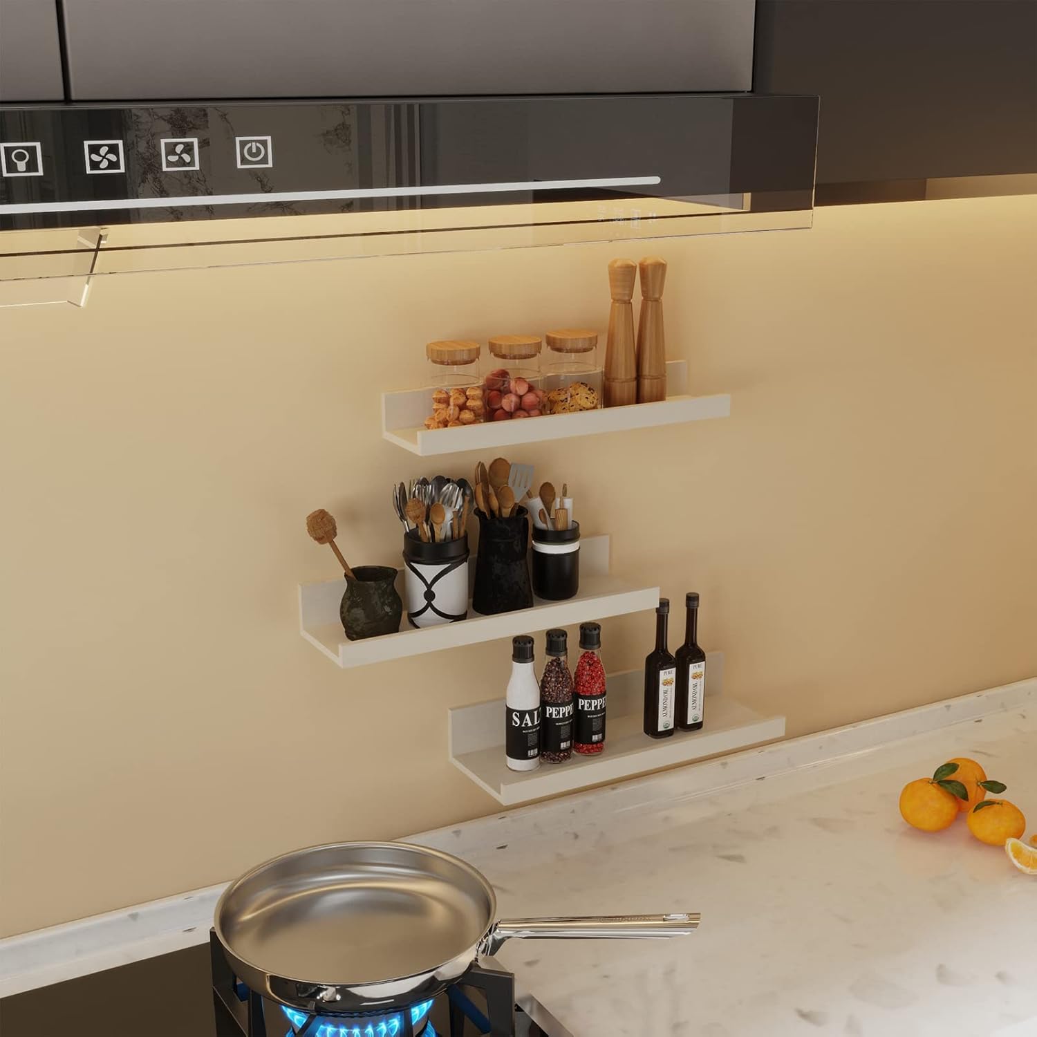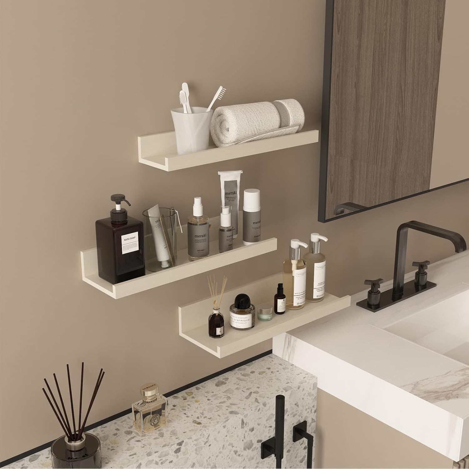 Giftgarden 16 Inch Floating Shelves Wall Mounted, Creamy White Beige Wood-Grain Wooden Ledge Shelf for Bathroom Bedroom Living Room Kitchen Nursery, Set of 3 Different Sizes