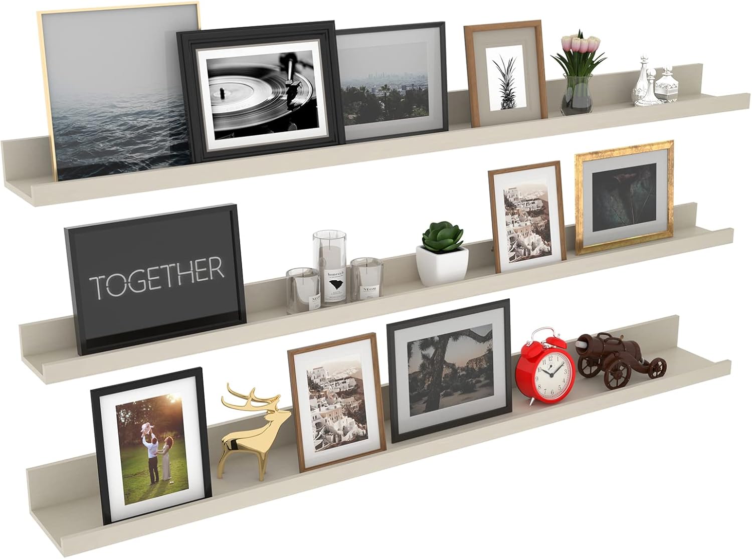 Giftgarden 47 Inch Floating Shelves for Wall Creamy White Beige Wood-Grain, Long Picture Ledge Large Wooden Photo Shelf for Living Room Bedroom Nursery Office, Set of 3 Different Sizes