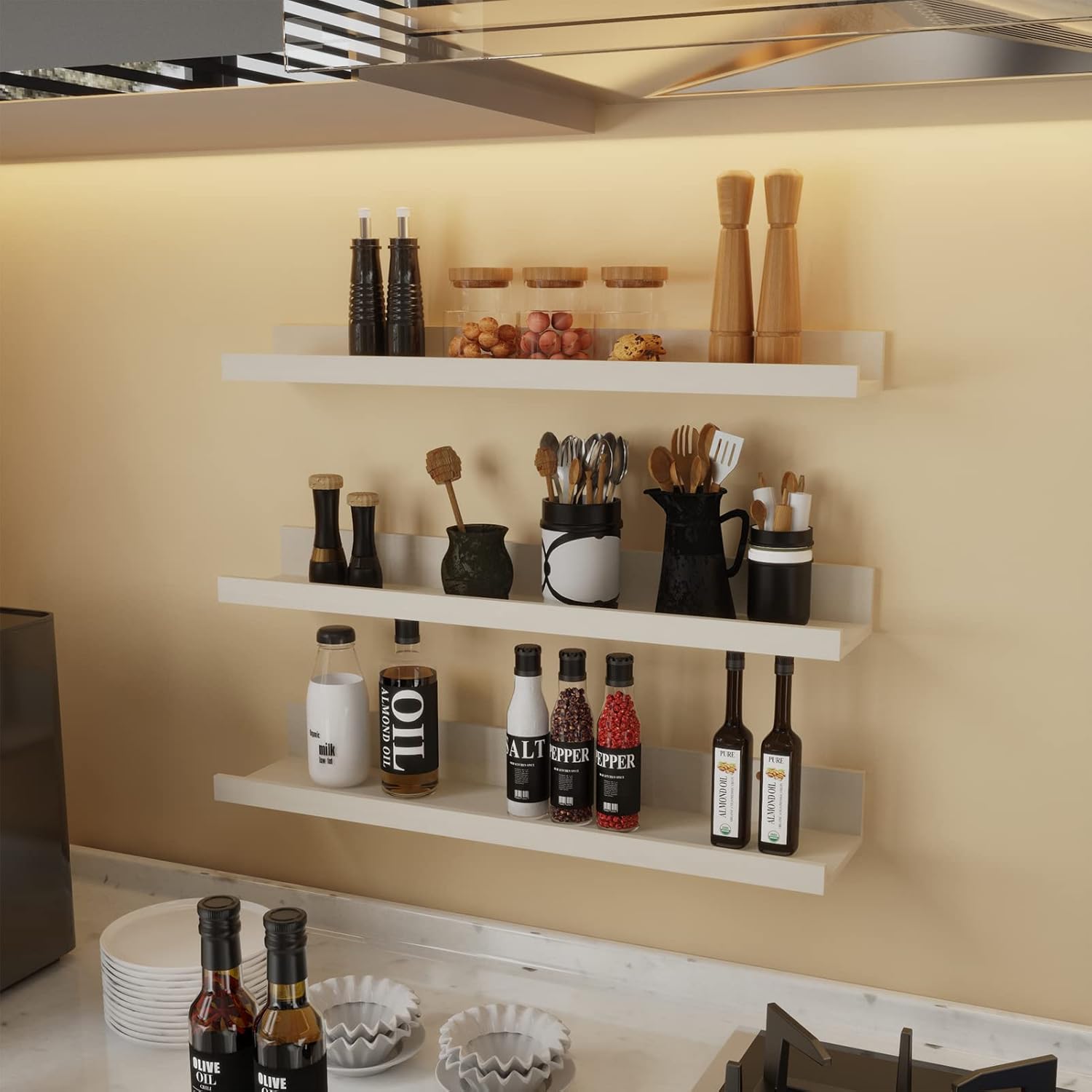 - Versatile Wall Shelves: These wall ledge shelves accommodate various items such as pictures, albums, small plants, spices, jars or keepsakes in bedroom, kitchen, bathroom, living room or office. These floating shelves for wall suit all your needs and keep your wall less cluttered.