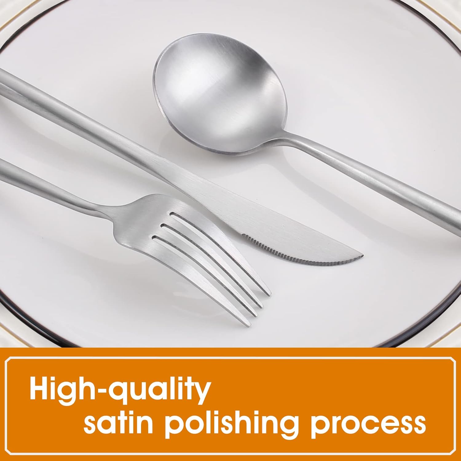 Matte Silverware Set, 20-Piece Stainless Steel Flatware, Tableware Cutlery Service for 4, Satin Finish Utensils, Knife Fork Spoon for Home and Restaurant, Dishwasher Safe