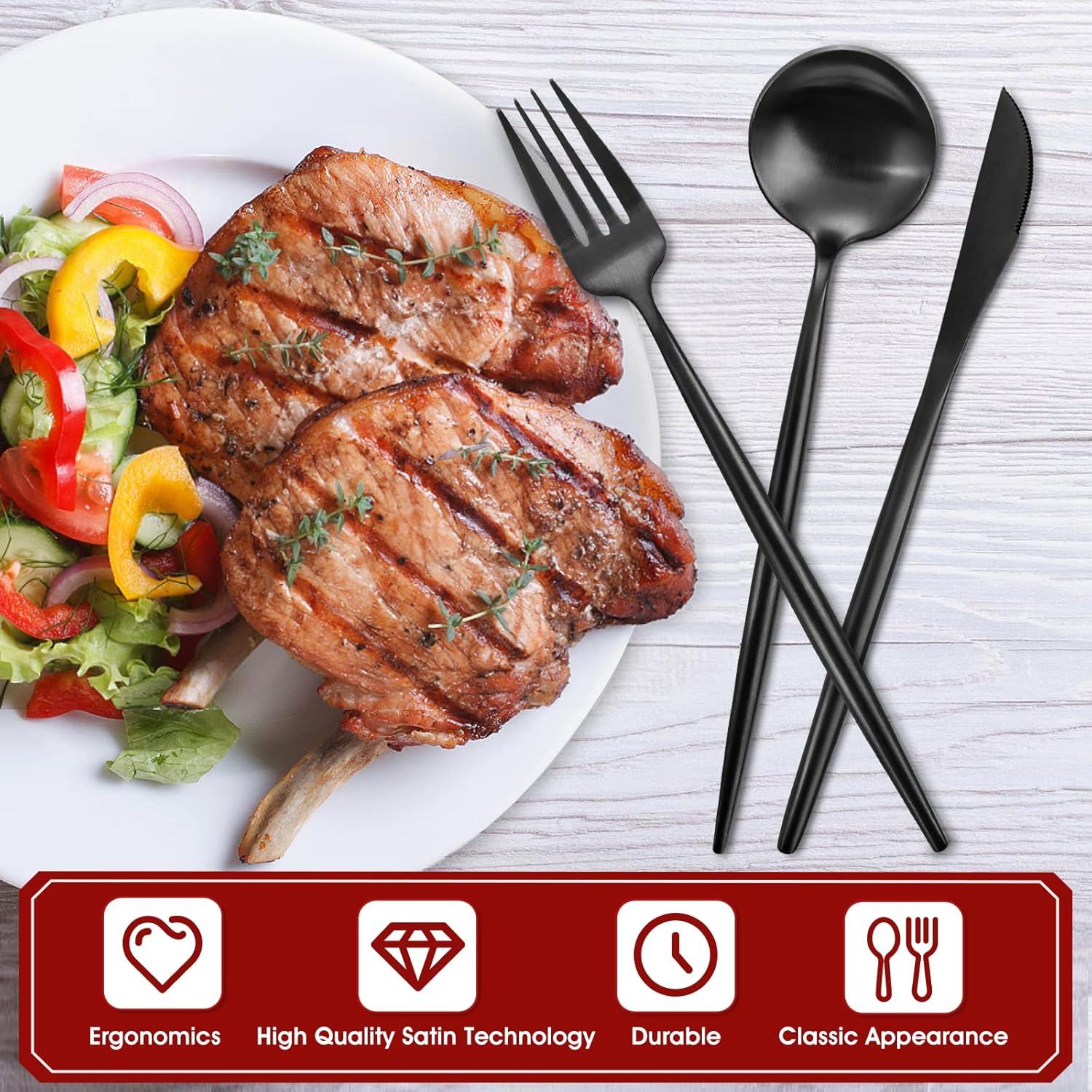 - Timeless Circular Design : Matte black silverware set's round head design is simple but not simple, and elegant design is never out of date. Ergonomic design makes tableware easy to use.