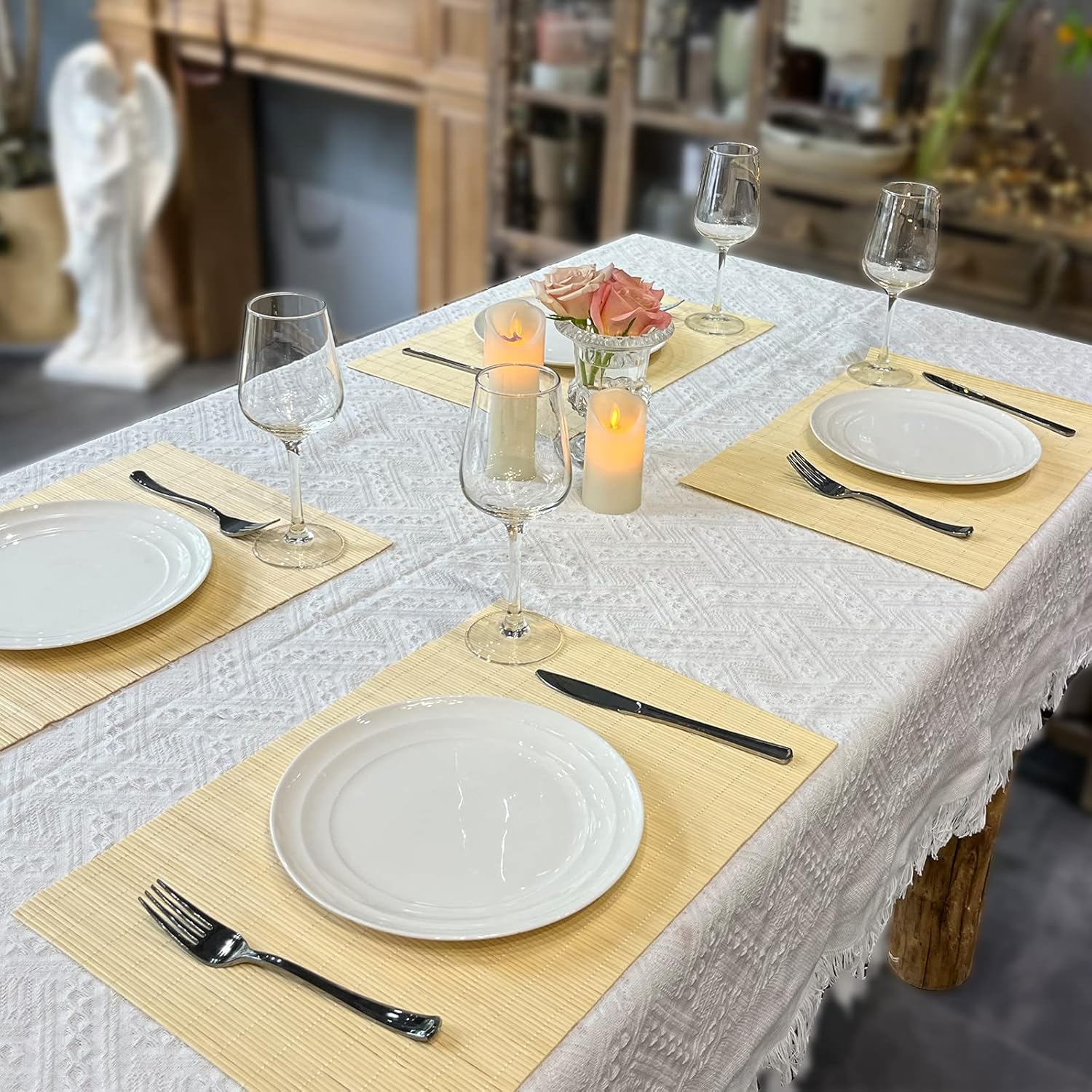 - 【PERFECT PROTECTION】:These bamboo placemats for dining table have a special heat insulating effect that protects any table from damage. The bamboo mats act as a shield between hot plates and your table, while also preventing spills, crumbles, or stains from destroying the furniture.The anti-slip feature can also effectively protect you and your family during meals.