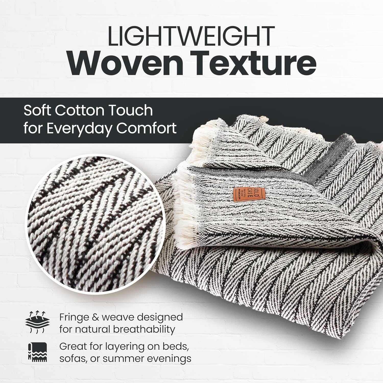 - LIGHTWEIGHT LAYERS FOR RELAXED MOMENTS: Woven from 100% recycled Turkish cotton, this breathable and cute throw blanket adds a soft, textured touch to your space; made for layering on the couch, tossing over your shoulders, or adding a laid-back look to your decor