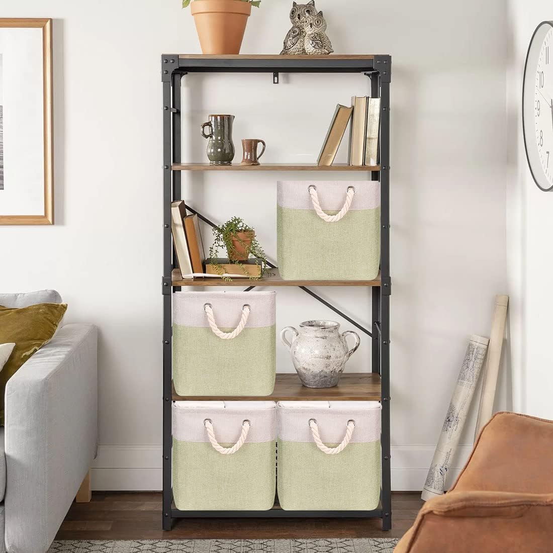 i BKGOO 3Pack Large Foldable Storage Bins,Collapsible Sturdy Cationic Fabric Organizing Storage Basket Cube with Cotton Handles for Home Office Shelf Clothes Toys Beige-Green 13×13×13 inch