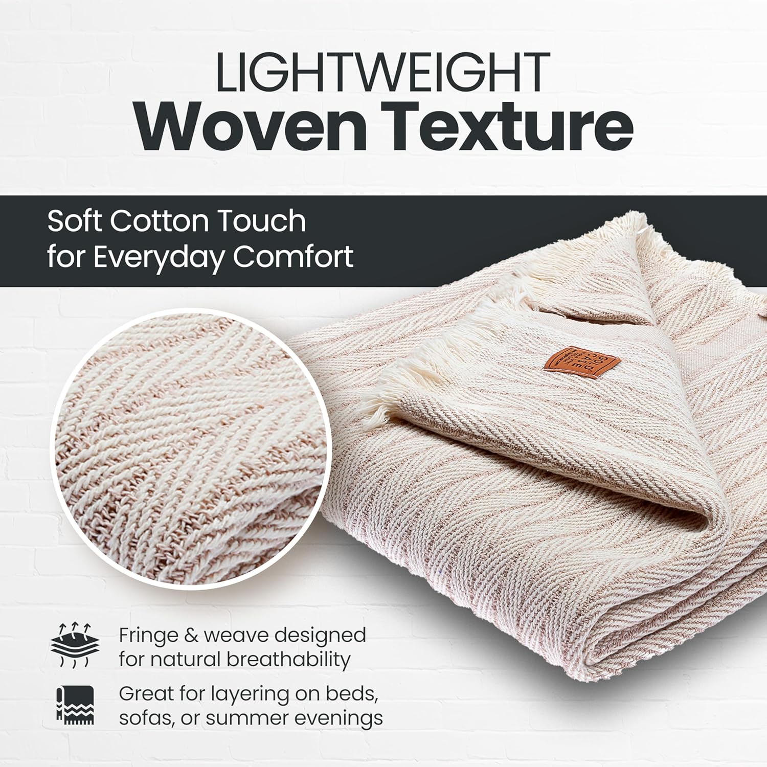 Gold Case Throw Blanket for Couch – 100% Recycled Turkish Cotton Blankets & Throws – Elegant Decorative Throw Blankets for Living Room Sofa – Woven Throws for Couch – Vintage Beige – 60x80