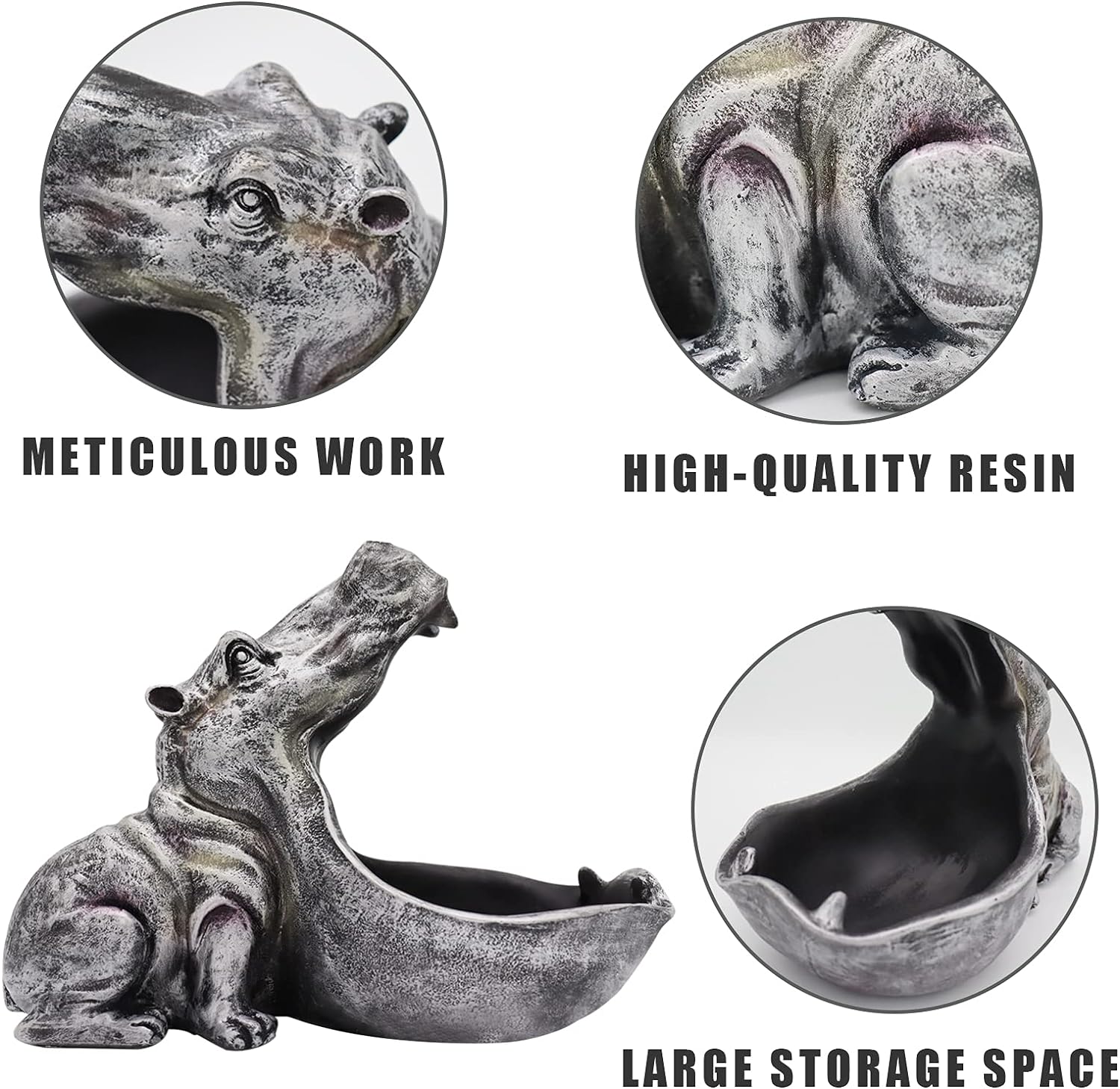 aboxoo Hippo Statue Home Resin Hippopotamus Figurine Fun Candy Dish,Key Bowl,Big Mouth Sculpture Table Art Decoration Sundries Container Storage Boxes (Grey)
