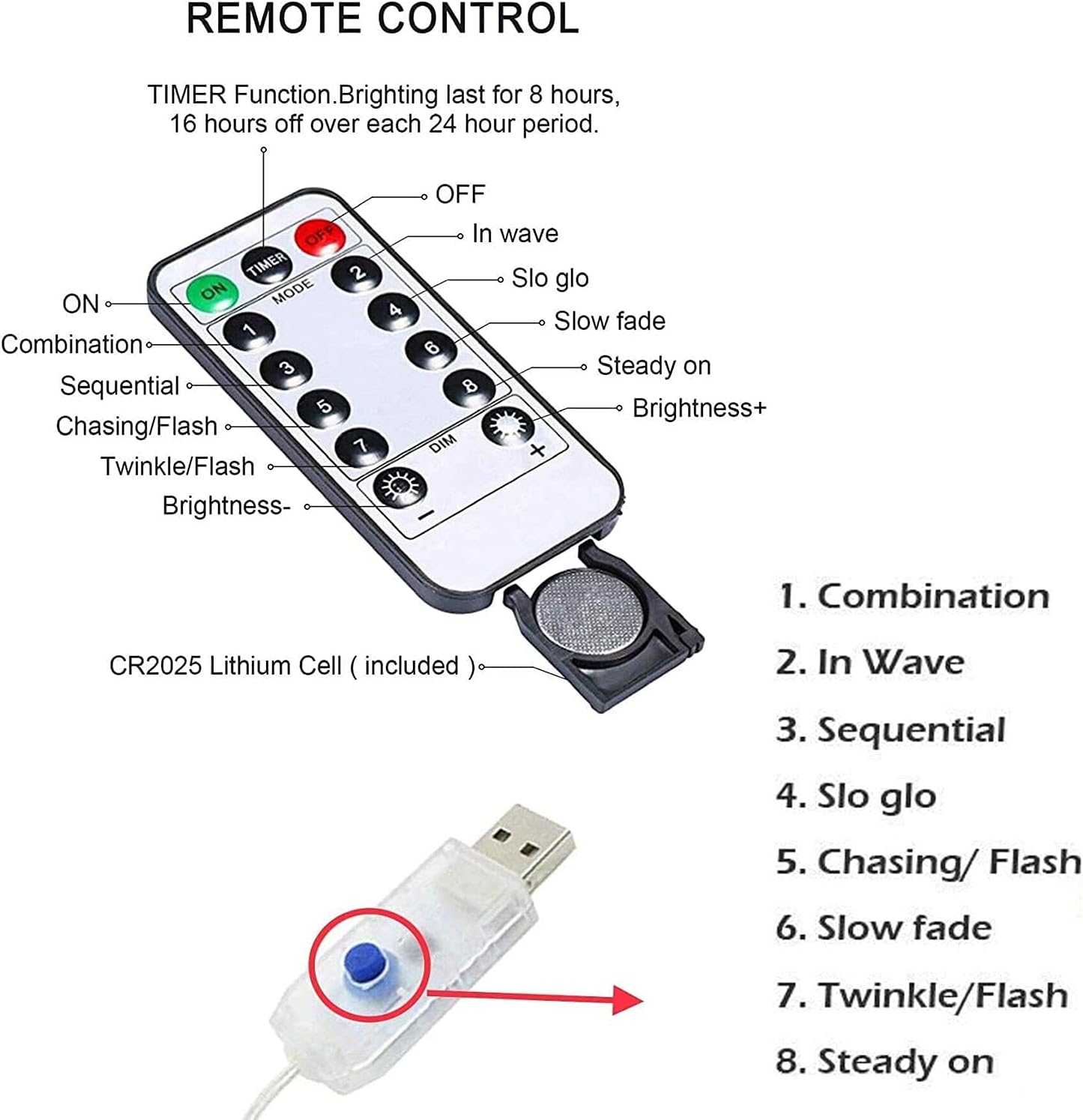 - Modes Settings - Butterfly Curtain Lights has 8 working modes including: Combination, In Waves, Sequential, SLO GLO, Changing / Flashing, Slow Fade, Twinkle / Flash, and Steady On. Just need to plug in USB interface device then you can select 8 different modes to satisfy your diverse needs.