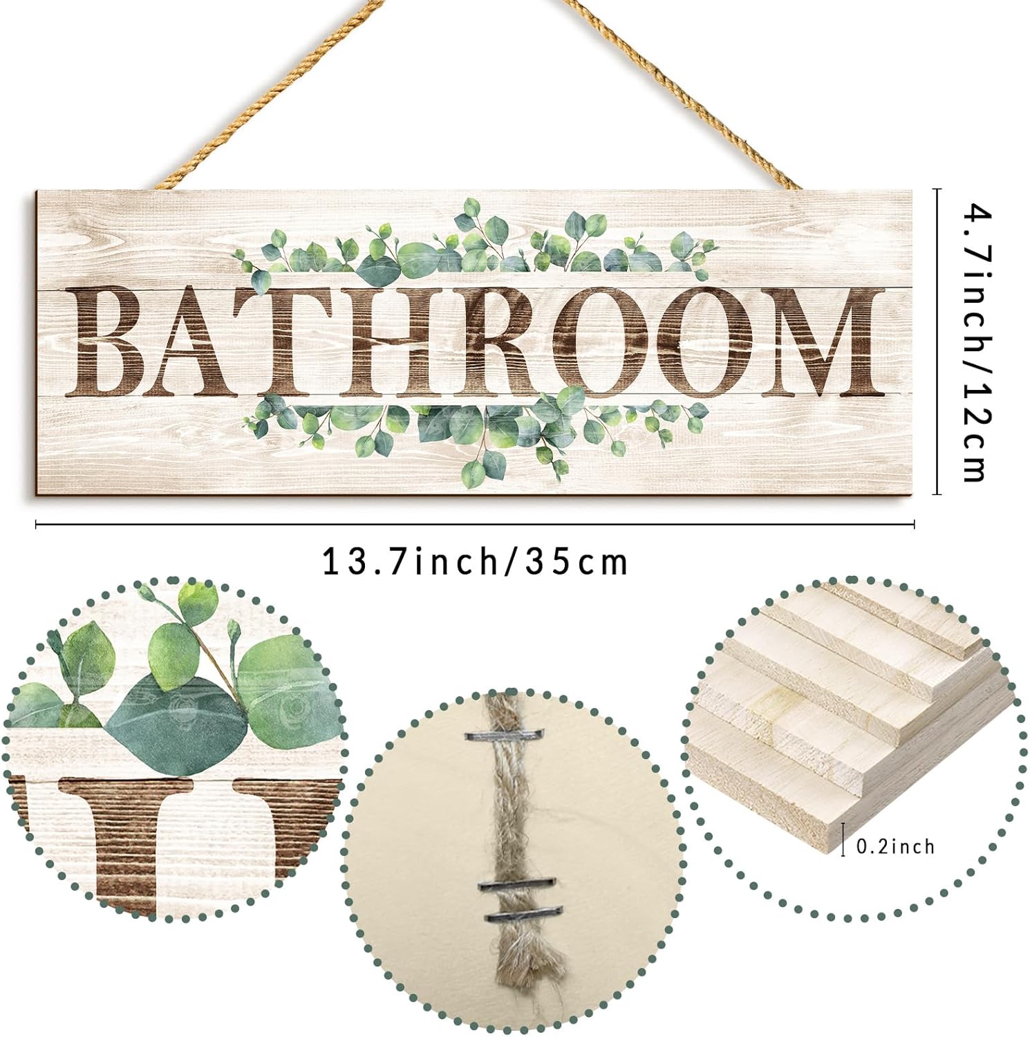 Bathroom Sign Wall Decor, Bathroom Wall Art with Plant Print, Rustic Farmhouse Wall Hanging Plaque Home Kitchen Decorative Bathroom, 4.7 x 13.7 inches