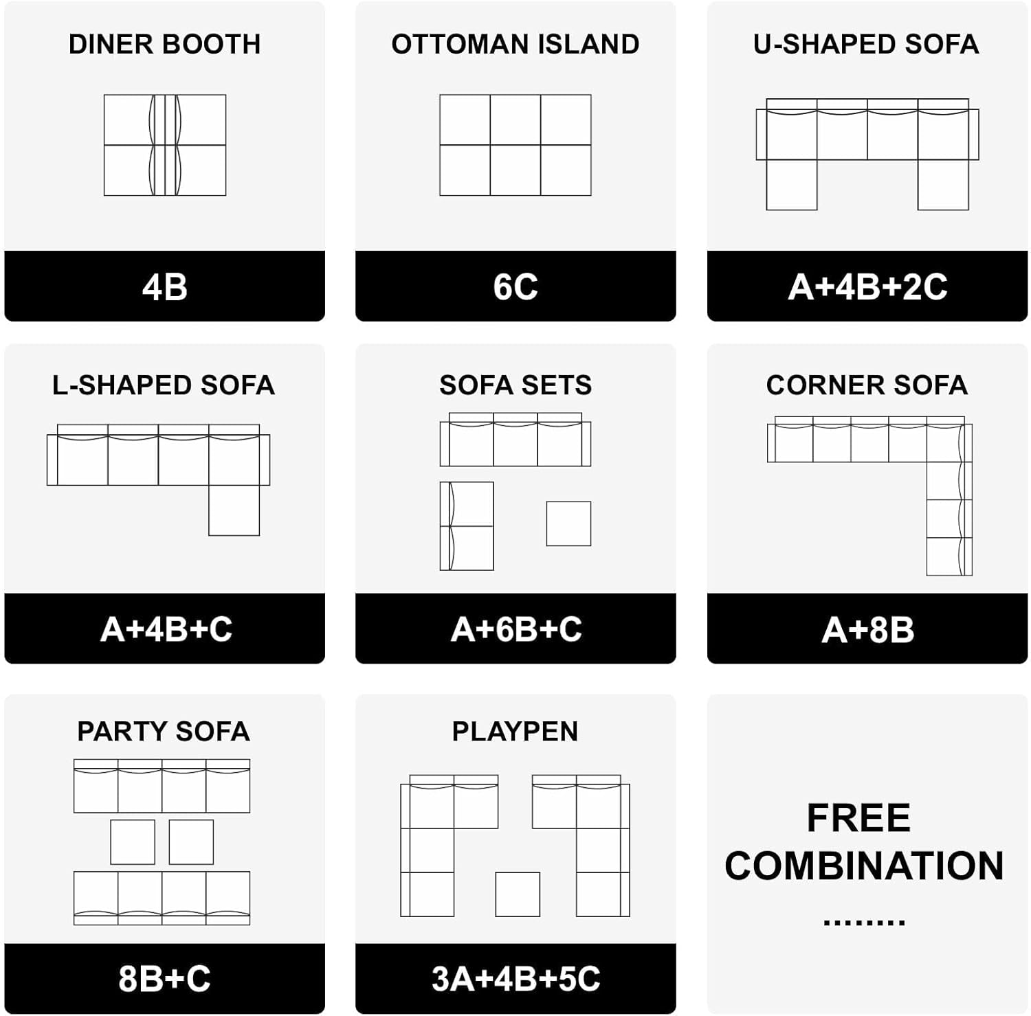 - Soft Cushions: The cushion of this modular sectional sofa you sit on is breathable and soft. Each seat cushion is filled with high resilience foam that gives good support for your body and quickly regains its original shape.
