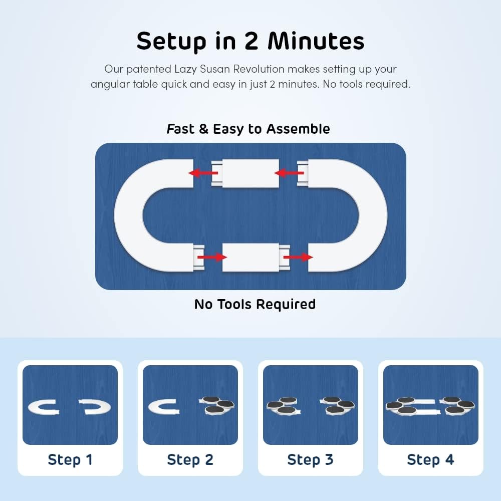 - β° 2 MINUTE ASSEMBLY - Our easy-to-assemble, easy-to-use, and easy-to-clean extra-large lazy susan is the perfect addition to your dining room table. No tools are needed to assemble. Plus we've designed our box specifically for storing your lazy susan turntable quickly and easily after meals.
