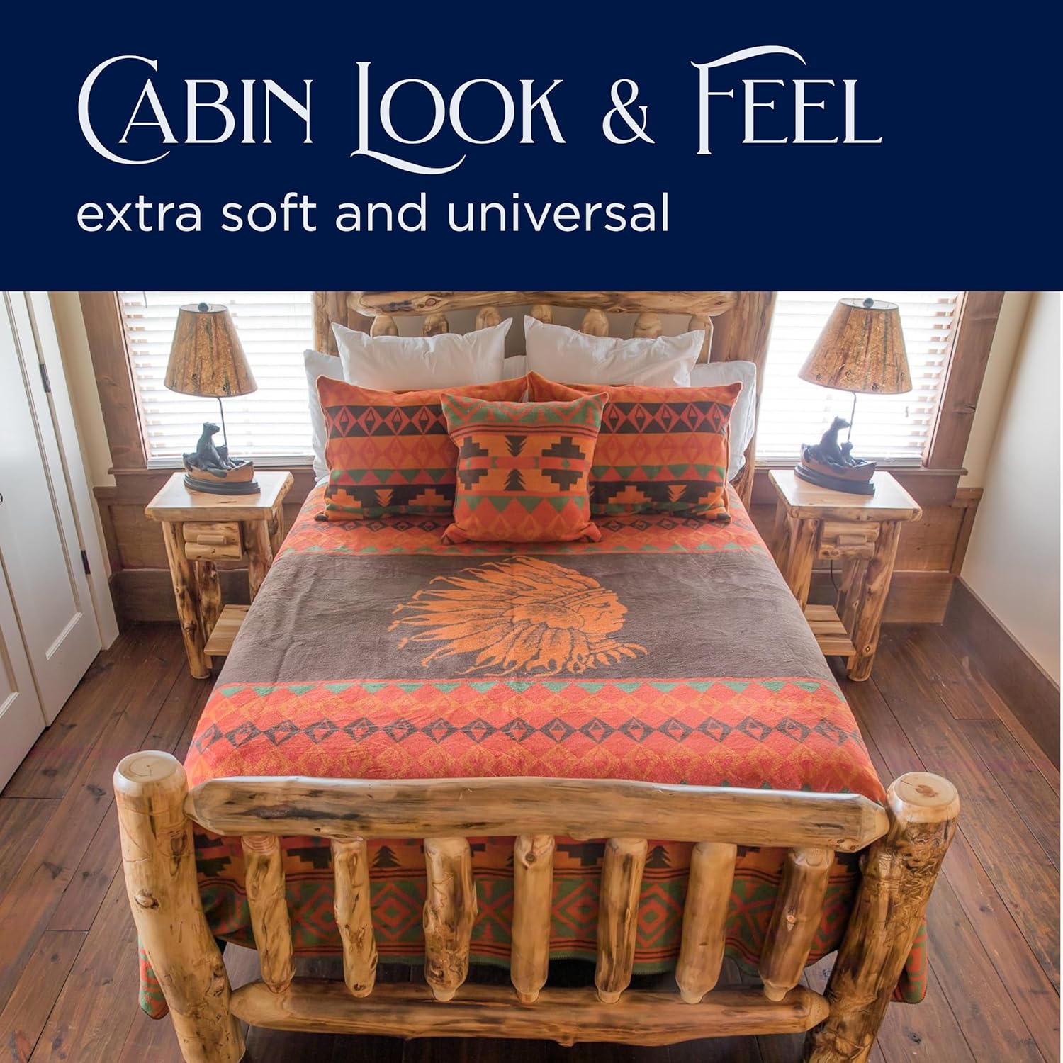 Beacon Blankets Southwestern Chief Henry Native American Design Throw - 90" x 90" Blanket Only - Premium Plush Blanket Can be Used for Queen or King Size Bed