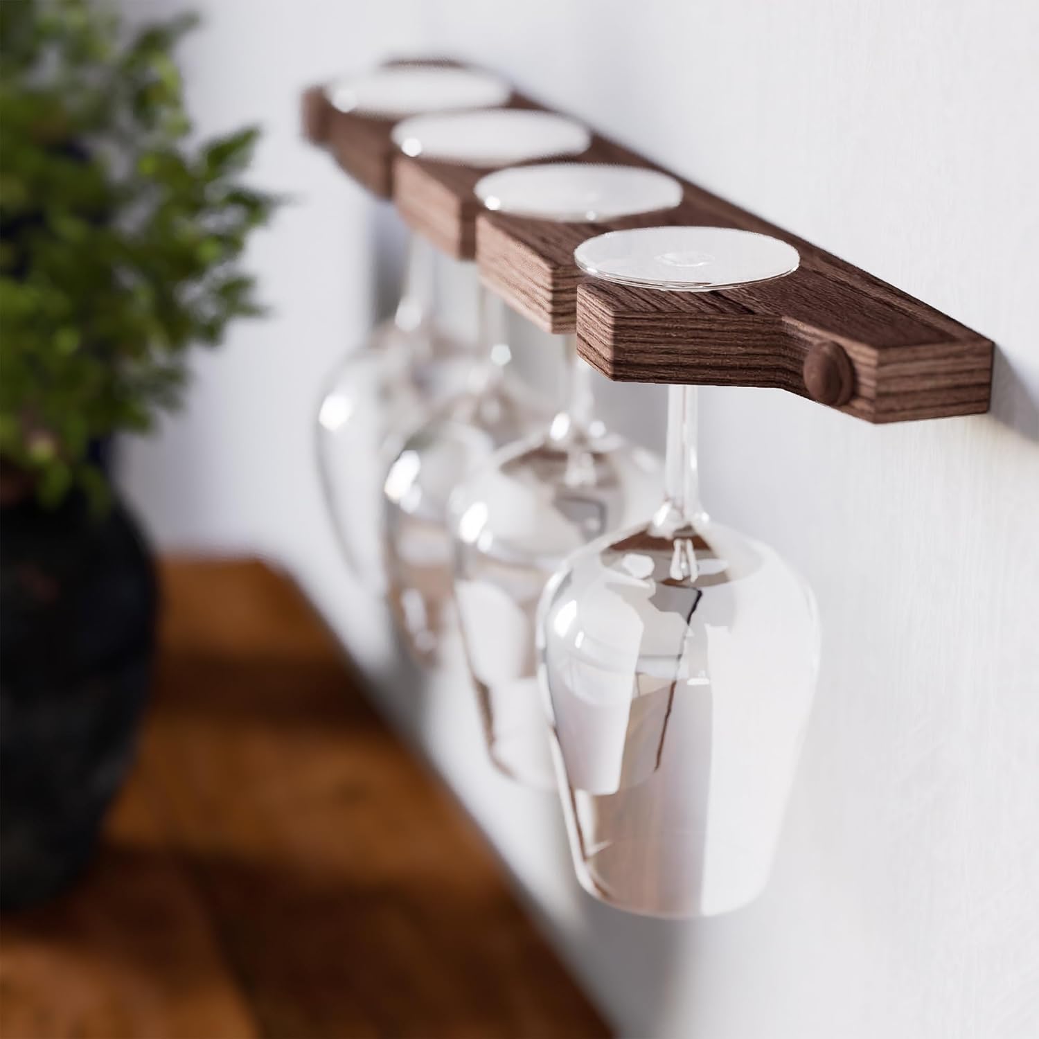 - Stemware Display with Easy Installation : With the beautifully crafted wine glass storage rack, you can display your antique, vintage or hard to find fluted glasses to make yourself happy every time you walk into your kitchen. This rack also can be used for wine bottle storage. Dimensions of each rack L 17" D 3 1/8" H 3/4"