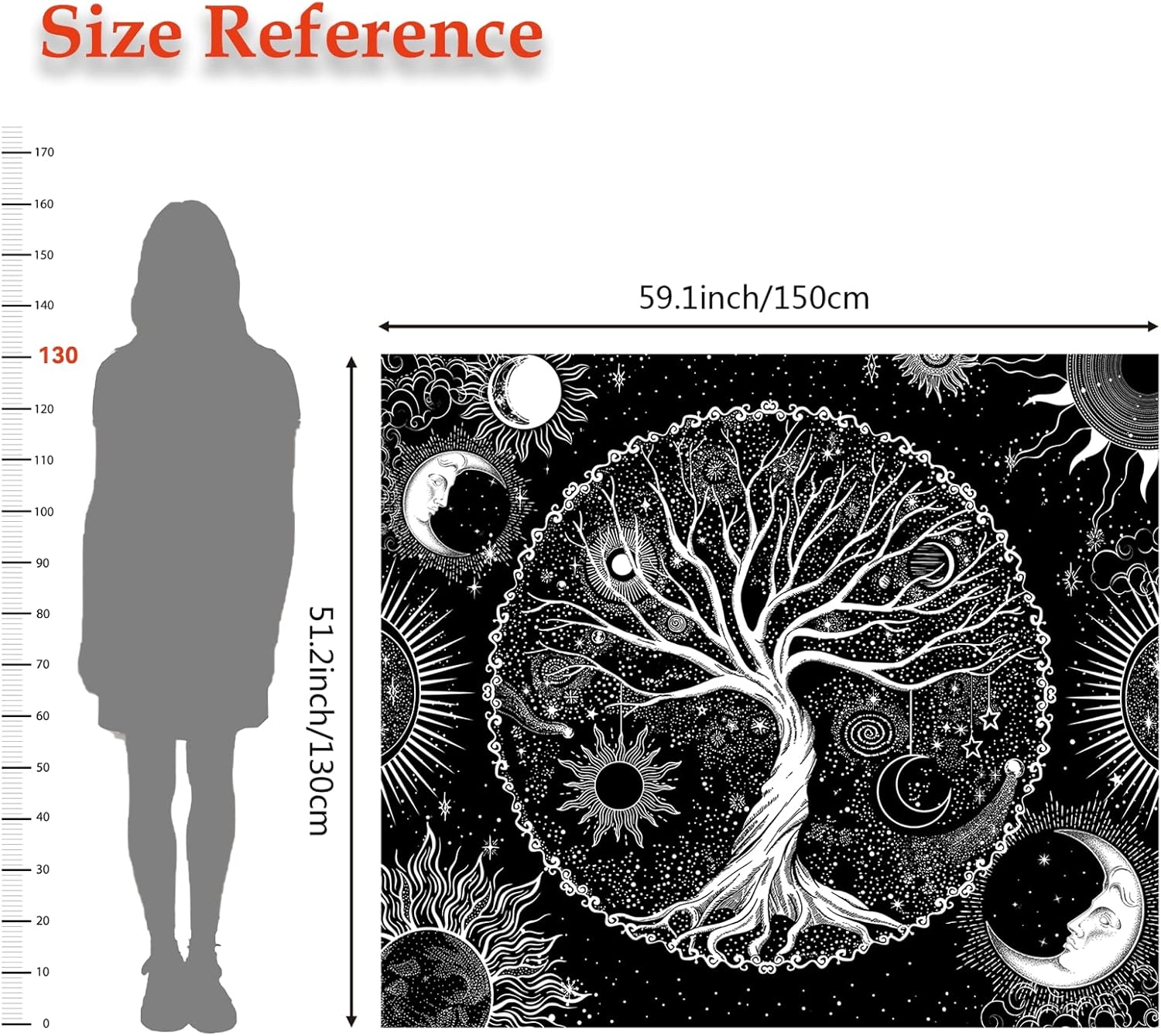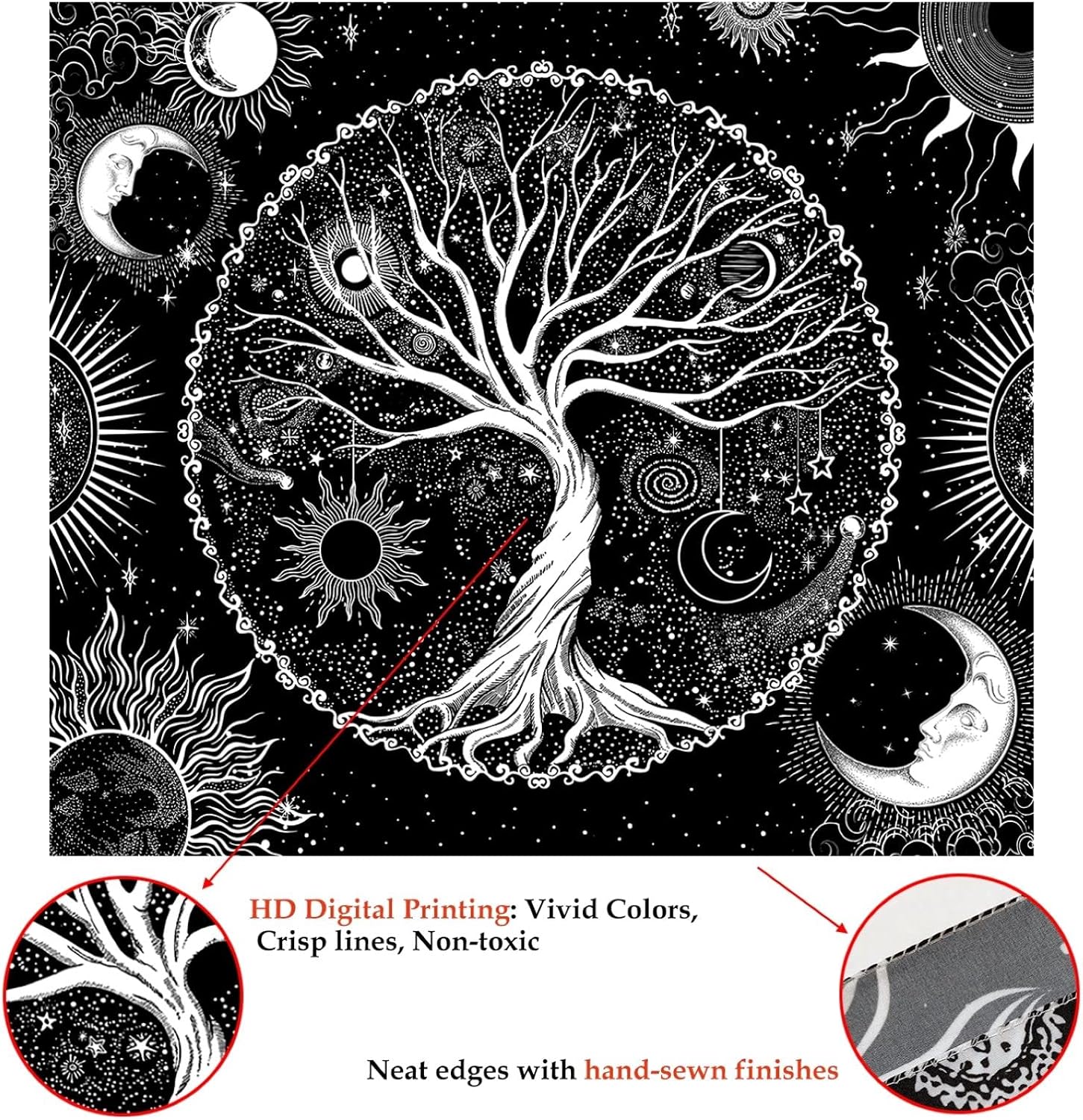 AACKart Tree of Life Tapestry for Bedroom Aesthetic Room Decor-Black and White Spiritual Tree Tapestry Wall Hanging with Sun Moon Star 59.1 x 51.2 inches