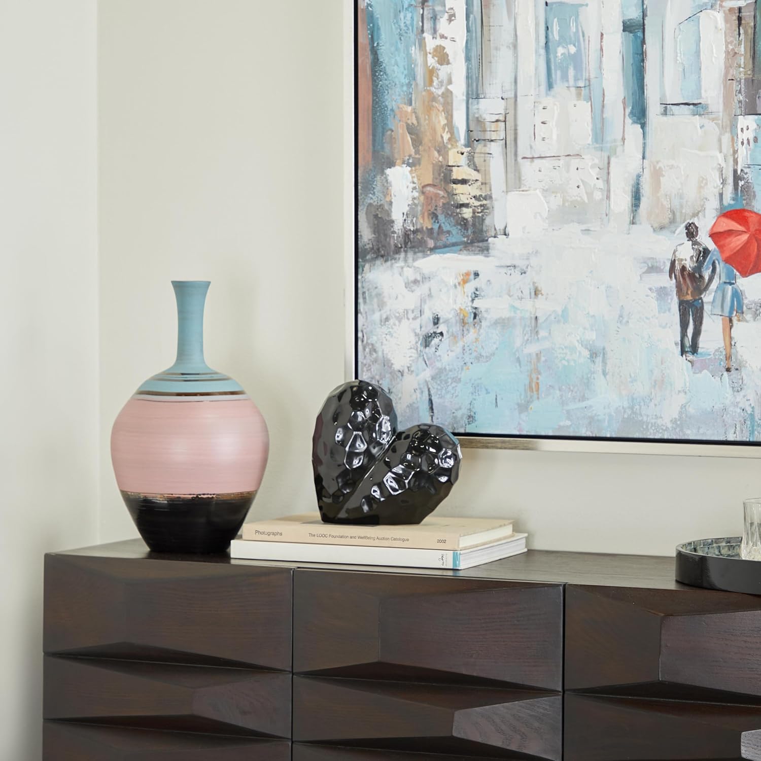 - HEART ASYMMETRICAL ACCENT STATUE: The porcelain sculpture showcases a slanted heart figure with a faceted and concave design exterior, adding unique visual interest