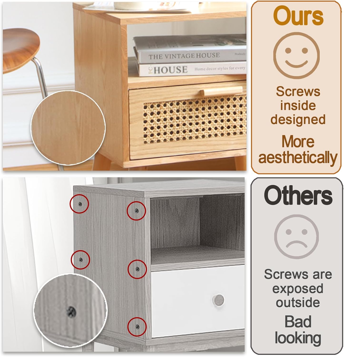 - Easy to assemble: The nightstand instruction is easy to read, the process of assembling is simple and easy to follow with detailed steps. When installing the screws, Do not use Electric Screwdriver, Please screw it by manually and be carefully