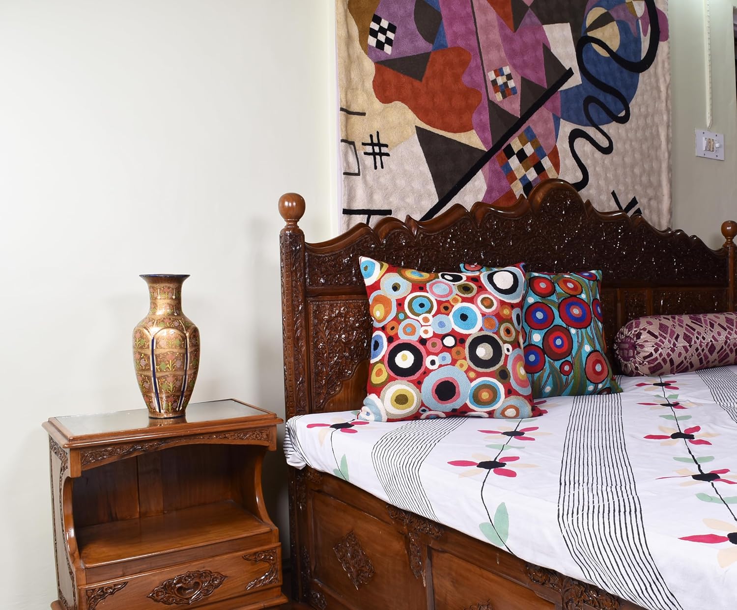 - β€ Polka Dot Throw Pillow Cover - Hand Embroidered: Indulge in the charm of our Polka Dot Throw Pillow Cover, where vibrant and delightful polka dot patterns meet the elegance of hand embroidery. These colorful decorative pillows draw their inspiration from modern art designs, and they are meticulously hand-embroidered in soft wool to perfection. When you take a closer look at these Polka Dot Throw Pillows, you'll have the chance to appreciate the incredible fine chain-stitch hand embroidery.