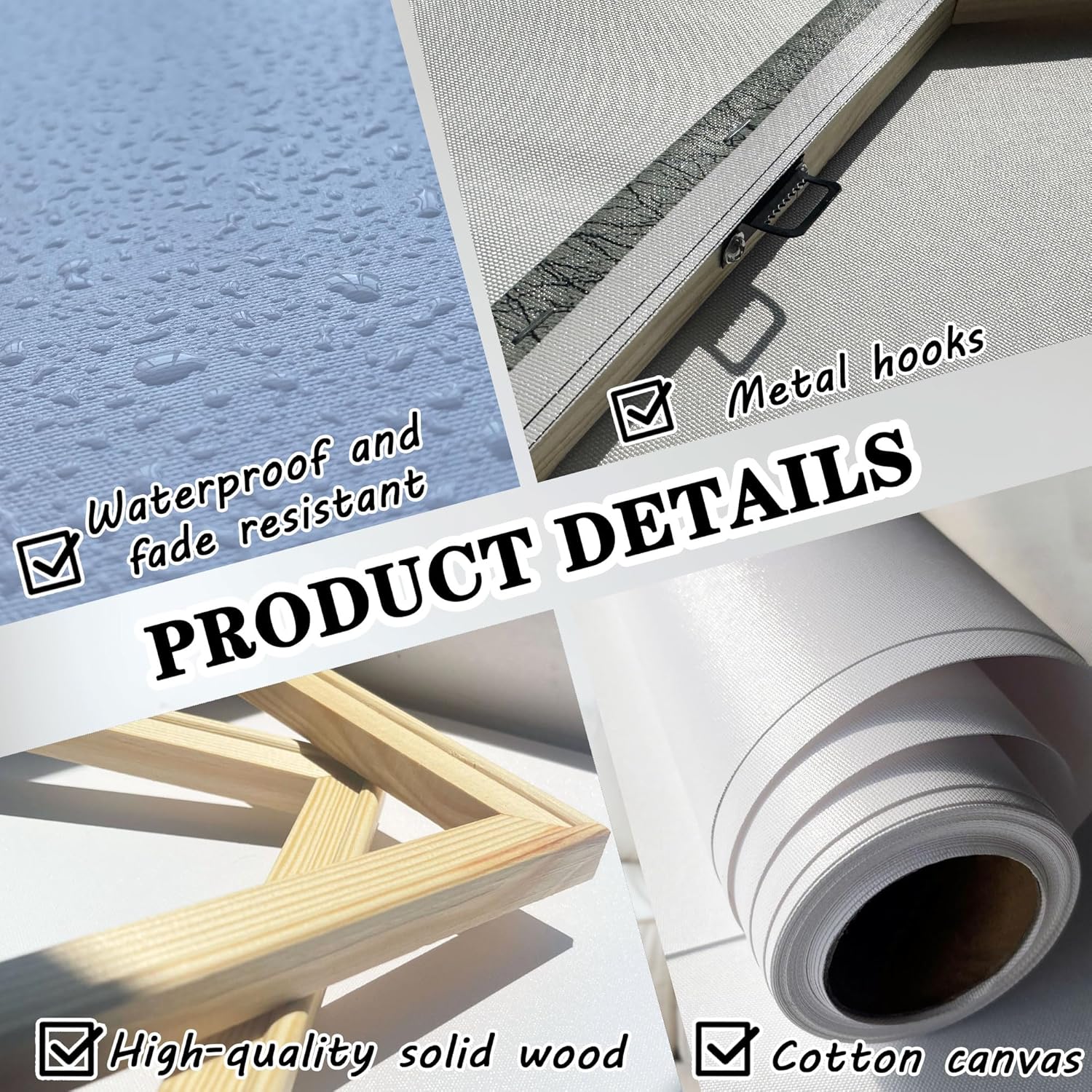 - PACKAGING: This canvas wall art is framed, the frame is made of balsa wood with black hooks and white nails for easy hanging. Packed in plastic and sealed in a cardboard box to protect the canvas picture.