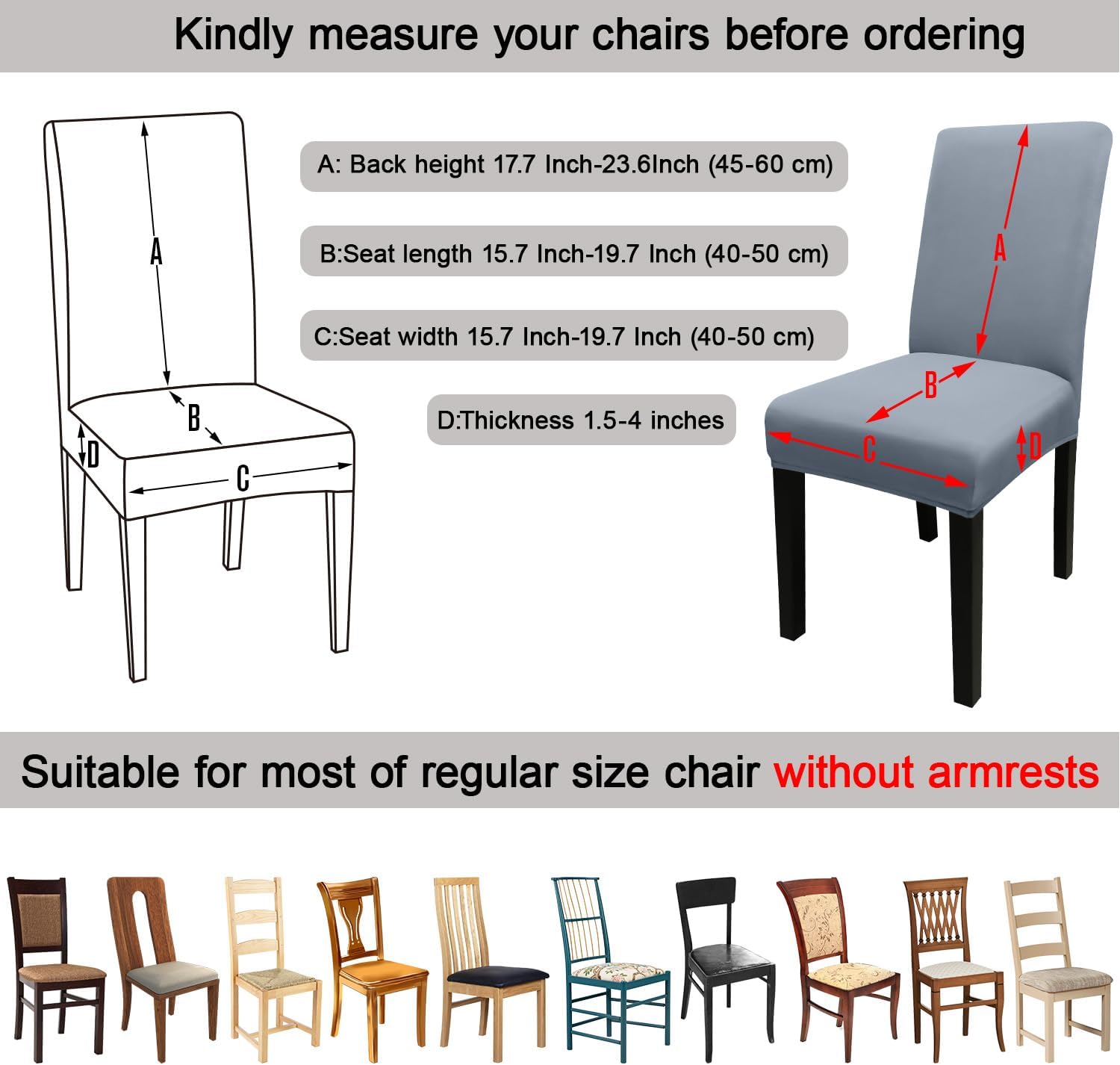 - 【High Quality of Chair Cover】- This dining chair slipcovers are made of polyester blend and stretchy spandex fabric, soft, comfortable and wrinkle resistant, no ironing required;Stretchable Material,stretch that recovers quickly,secure fit with sewn-in elastic hem.