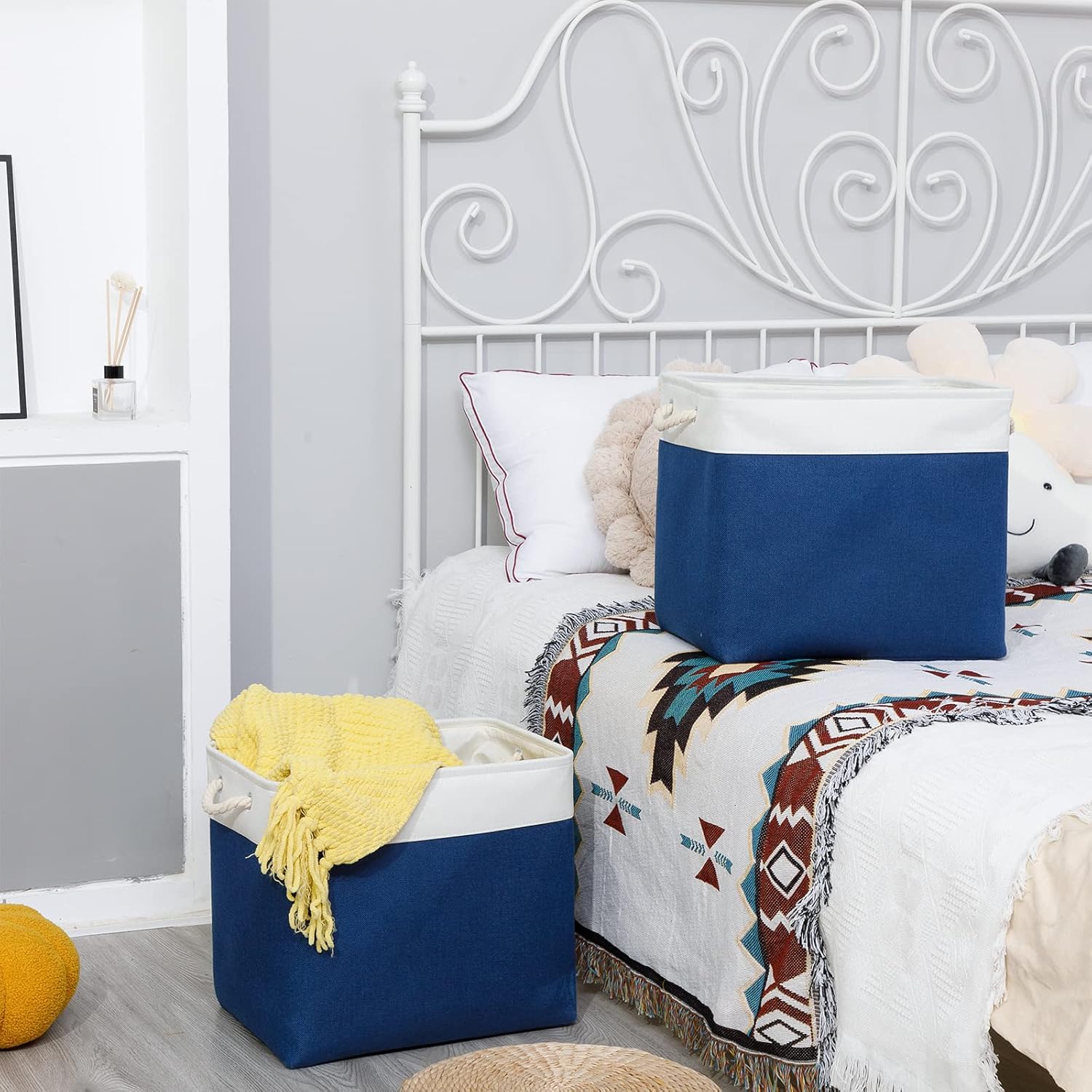 - [Multipurpose Storage] These large linen storage baskets for organizing provide an efficient solution in your home, office or travel to meet many storage needs such as organizing clothes, towels, blankets, toys, baby products, pet products, magazines, newspapers, camping tools, etc. Its storage capacity can keep the family tidy and beautiful, shelf baskets for organizing closet are a wonderful choice