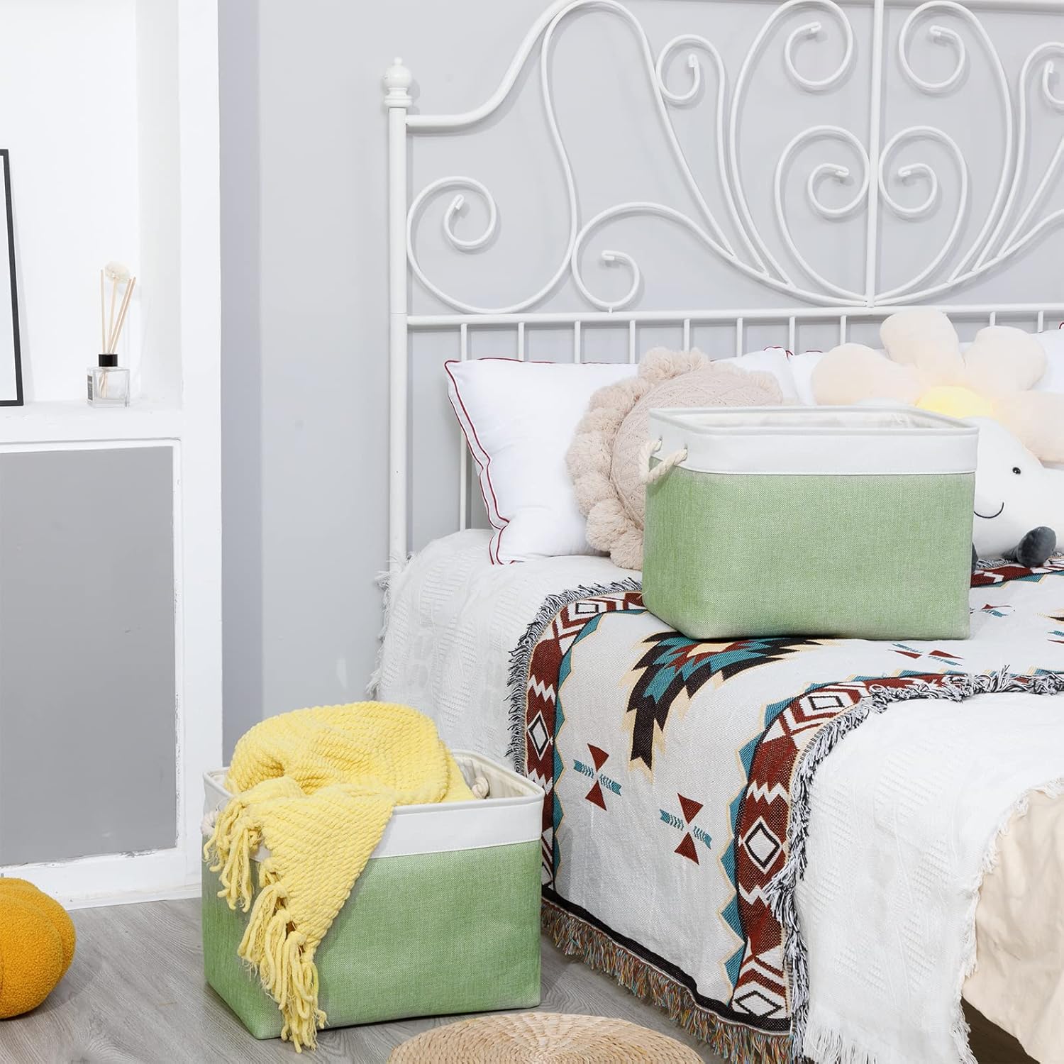 - Foldable Baskets Set: Simply fold the canvas basket down flat for space-saving storage when not in use or when needing to transport. If you mind the creases, you can use an iron to iron the creases in the basket. If you do not use an iron, the creases will slowly disappear as you store your items