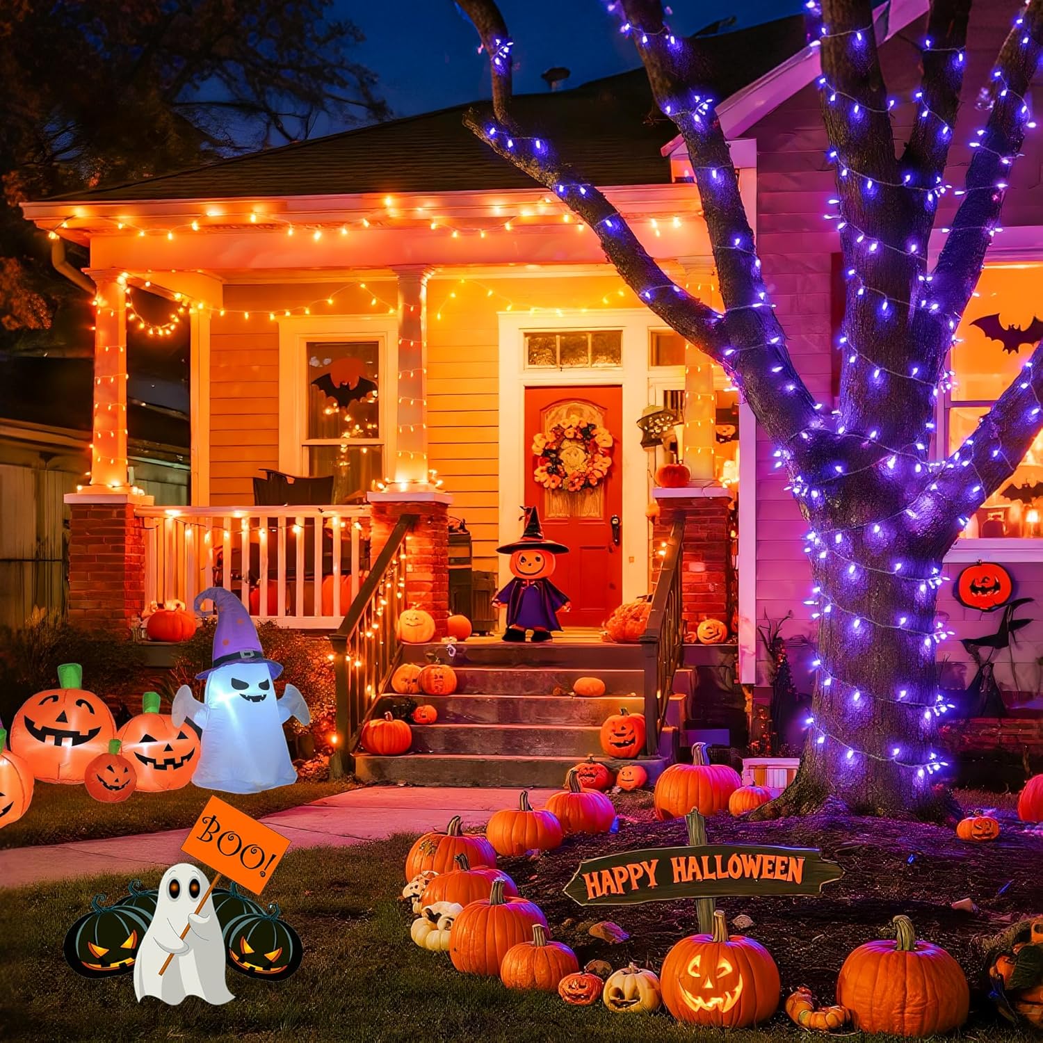 JMEXSUSS 168ft 600 LED Halloween Decor Lights Outdoor Clear Wire, Orange Purple String Lights Indoor Plug in,Halloween Lights for Tree Porch Yard Decorations