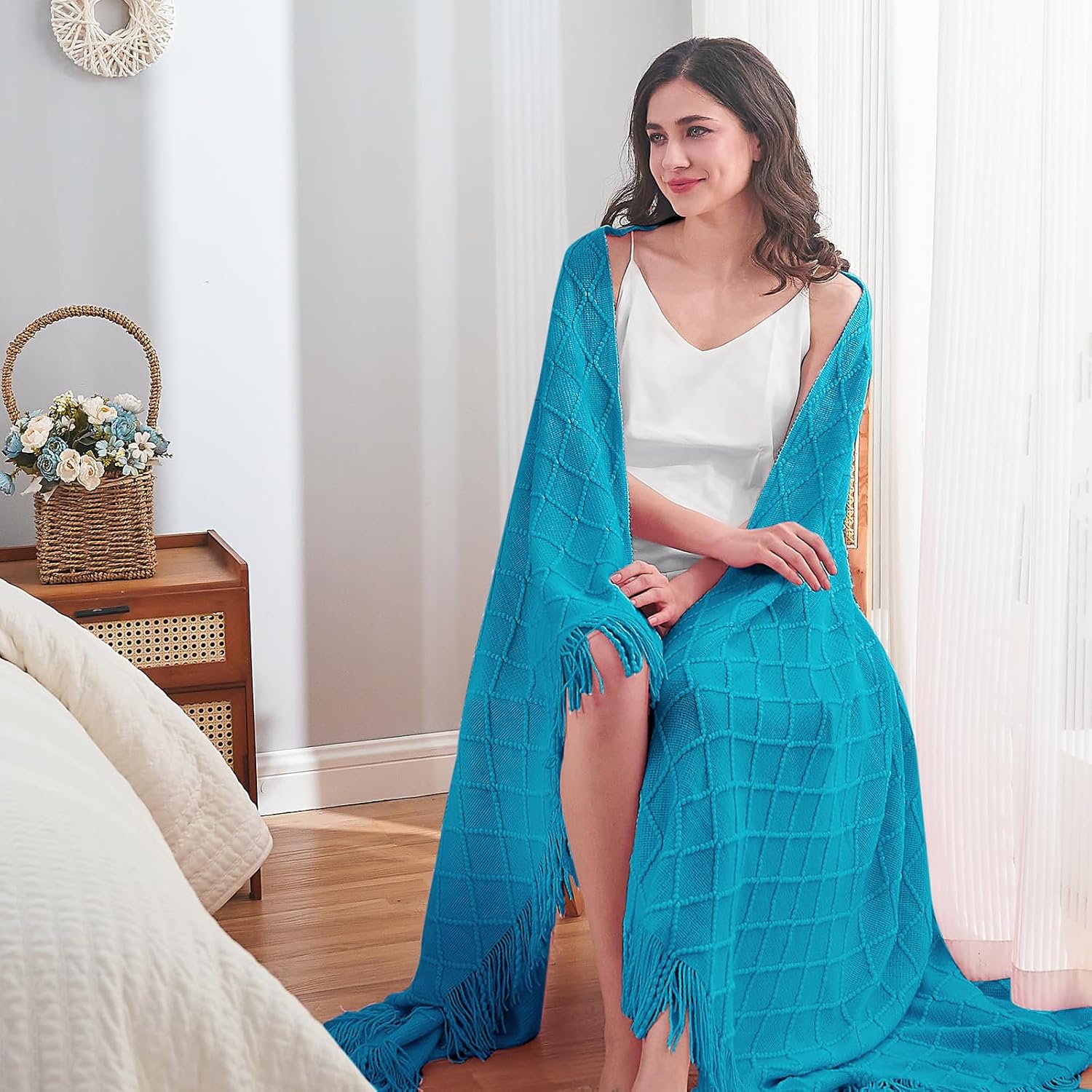 inhand Teal Throw Blanket for Couch and Bed, Soft Living Room Home Decor Knitted Twin Size Blanket, Outdoor Lightweight Breathable Summer Blanket, Farmhouse Warm Woven Decorative, 60"x80"