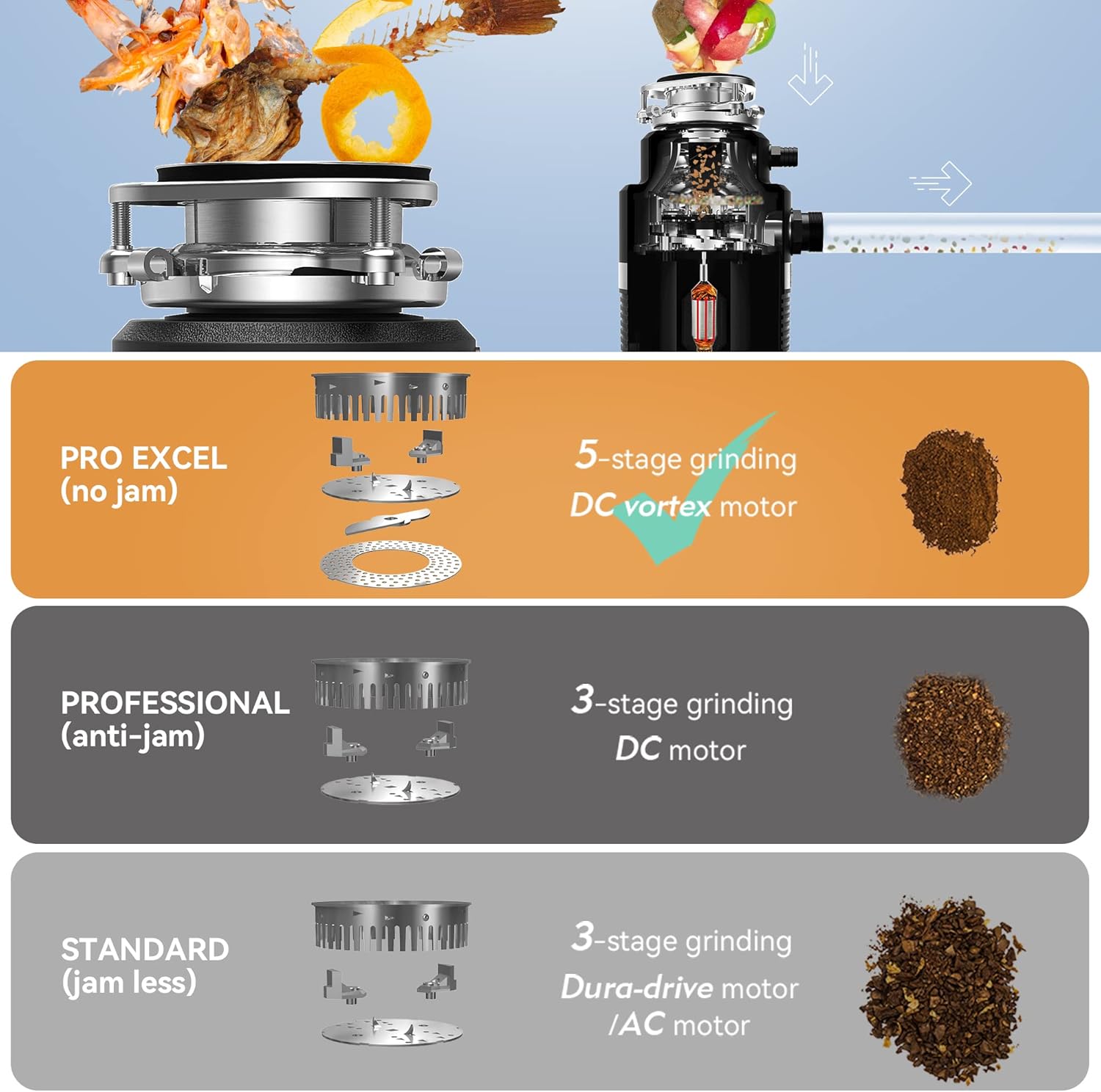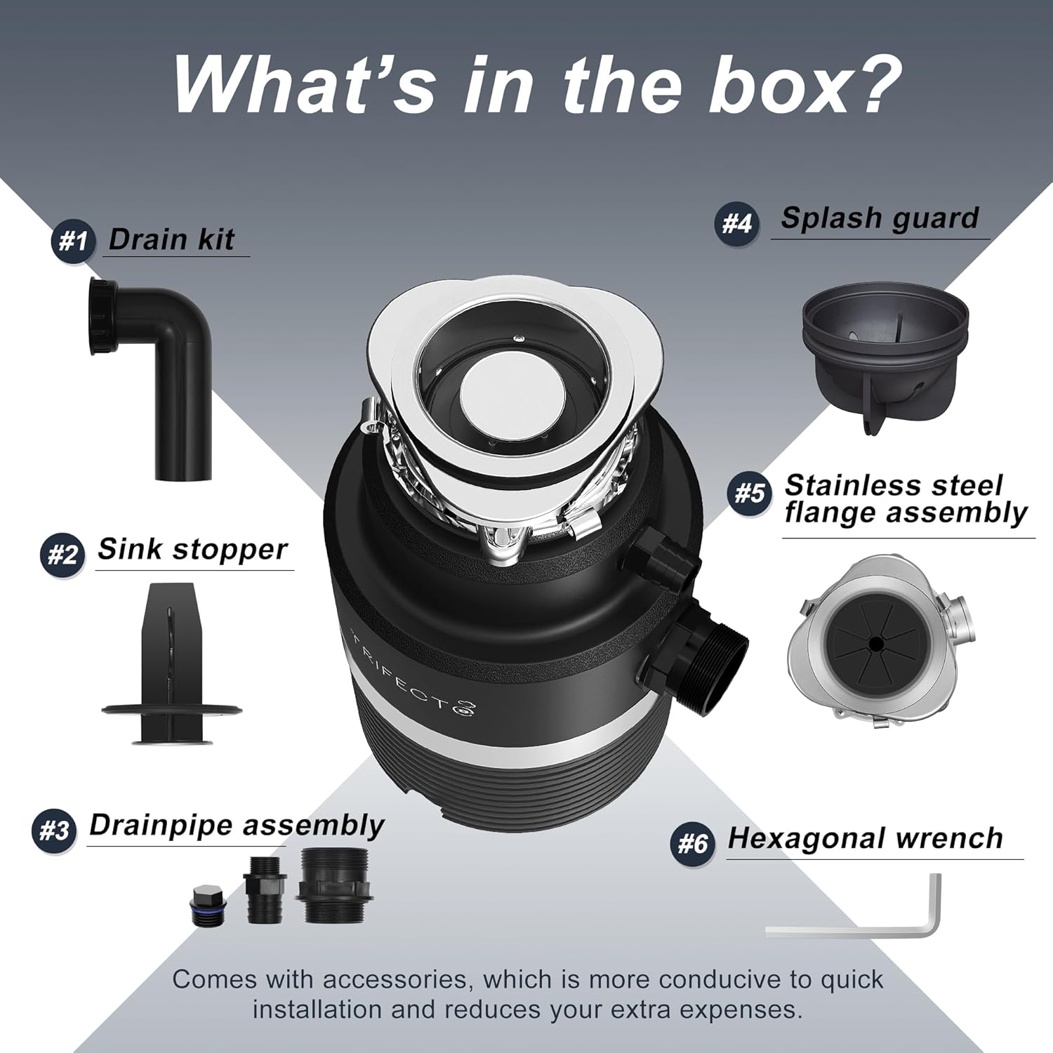 - QUIET & EXCLUSIVE: The Trifecte 1 HP Waste Disposal Food Waste Disposer features a sound reduction design that is less noisy than other disposals and exclusive Ultra Double-Layer efficient grinding technology for quieter, faster, and finer grinding.
