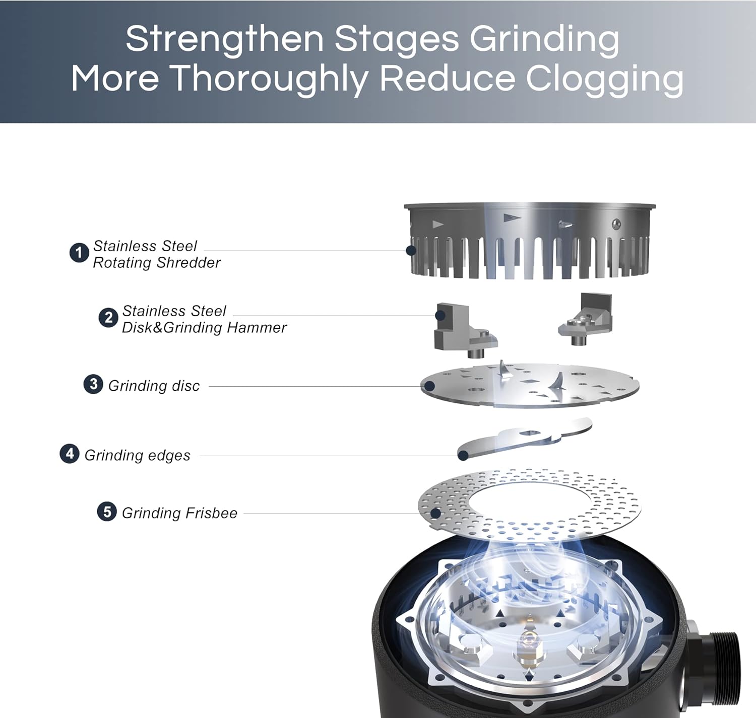 - Safer & More Effective:Garbage disposal's overload protection system automatically stops itself when stuck occurs. Its body has a reset button and a reset hole in the bottom can be manually reset with a hex wrench.