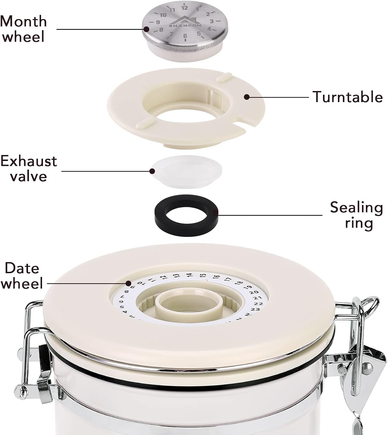 ShanSon Coffee Canister Airtight Coffee Container Stainless Steel Coffee Bean Storage Container with CO2 Release Valve and Scoop Coffee Canister for Beans,Grounds,Sugar,Flour,Tea,Cereal,22OZ,Off-White