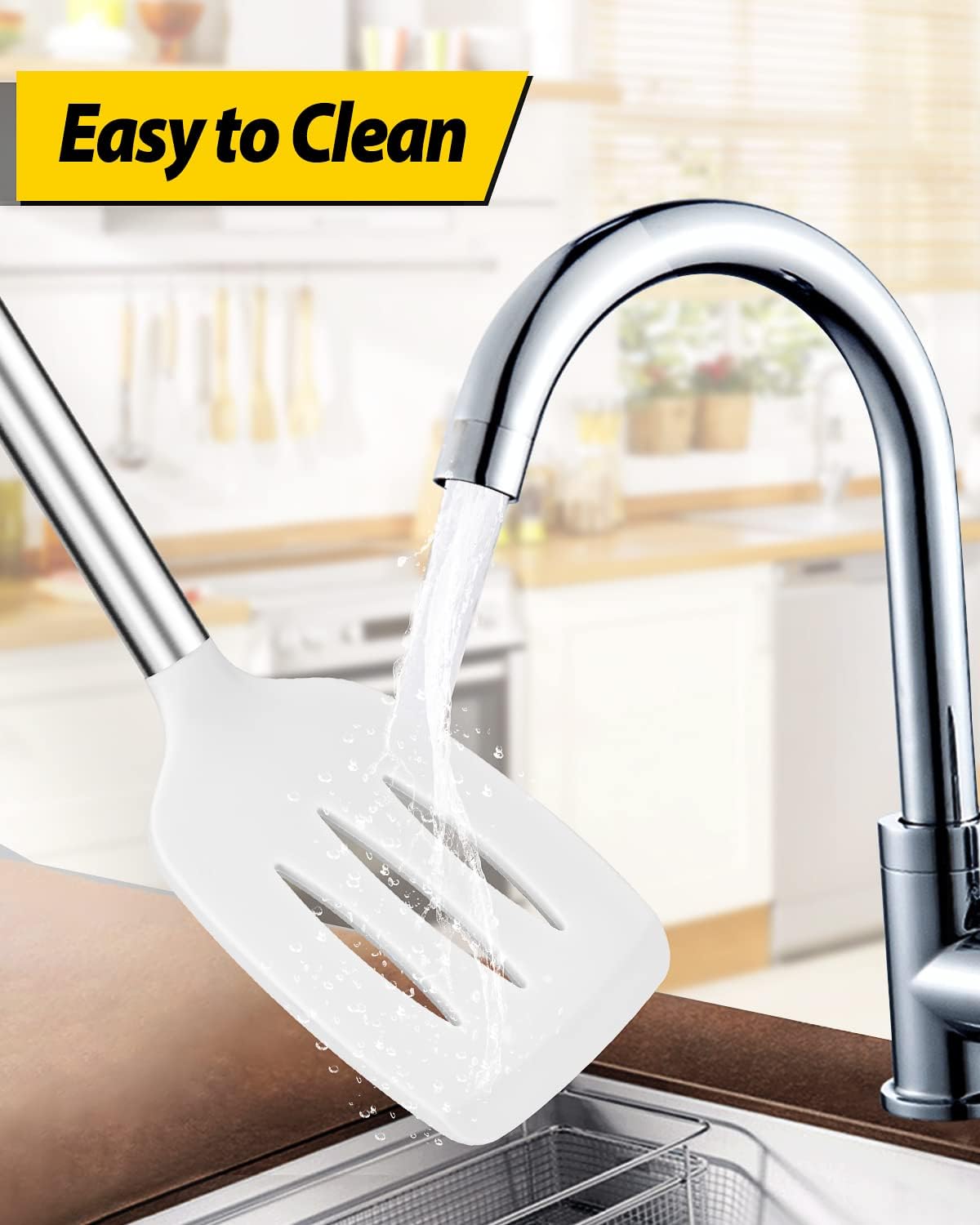 Pack of 2 Silicone Solid Turner, Non Stick Slotted Kitchen Spatulas, High Heat Resistant BPA Free Cooking Utensils, Ideal Cookware for Fish, Eggs, Pancakes(White)