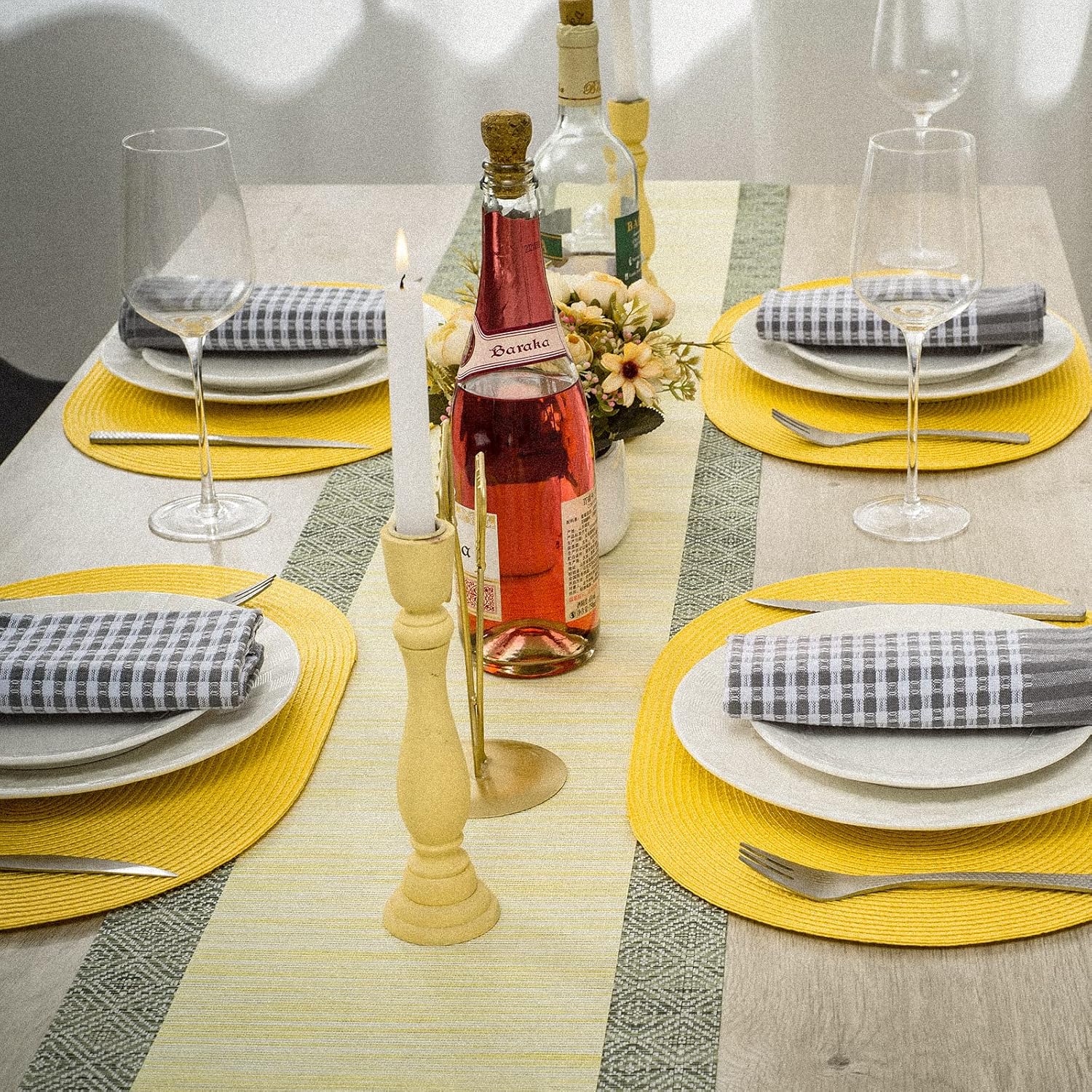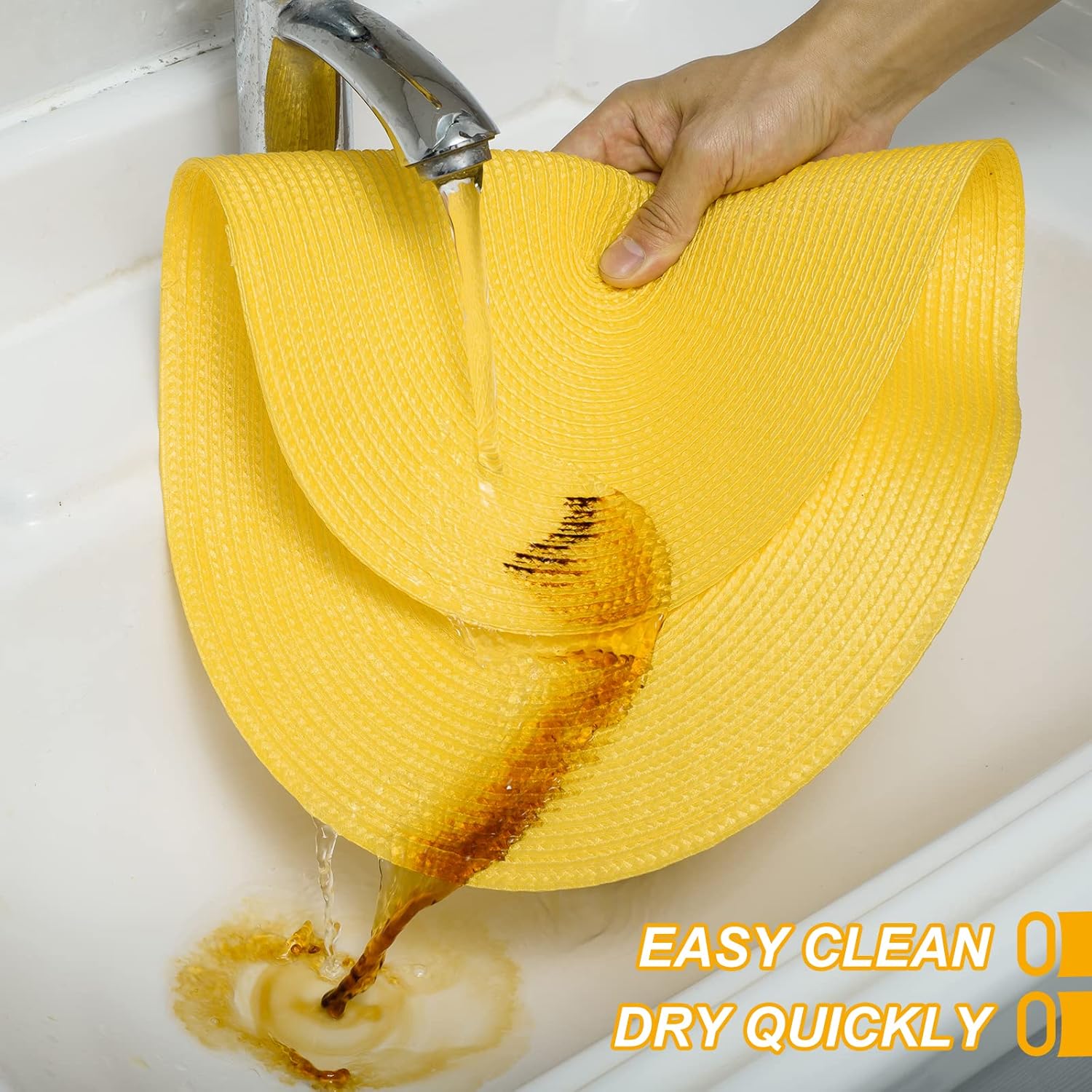 AHHFSMEI Placemats Set of 4 for Dining Table Washable Woven Vinyl Non-Slip 18x12 inches Placemat Heat-Resistant Durable Table Mats for Dining Table Easy to Clean (Oval Yellow, 4)