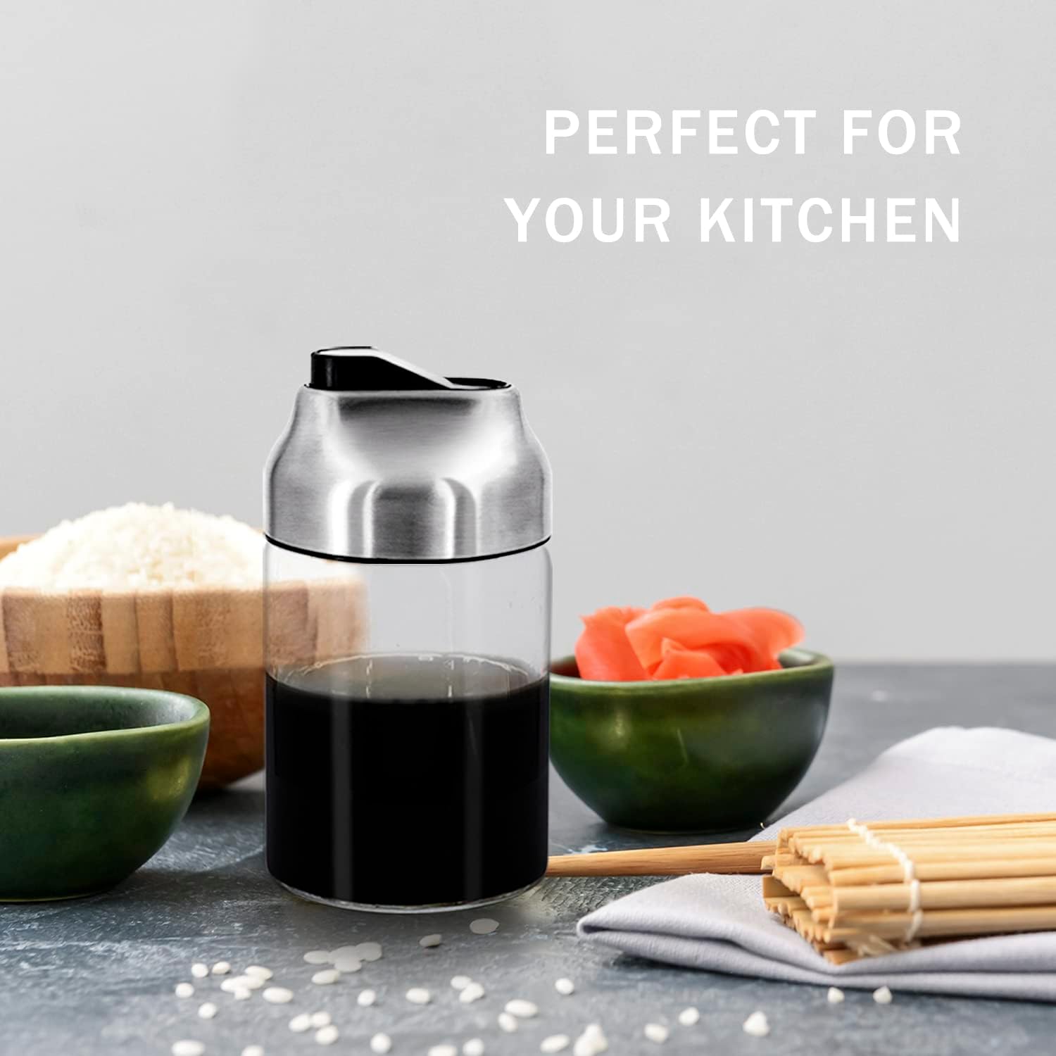 - No Drip Soy Sauce Dispenser: The no drip spout allows you to control the exact amount of oil, and oil will not drip out of the spout, keeping the bottle and countertop clean. This container fits 7oz of light or dark soy sauce and is the ideal size for single-handed control. No more lifting large and heavy bottles or losing caps.