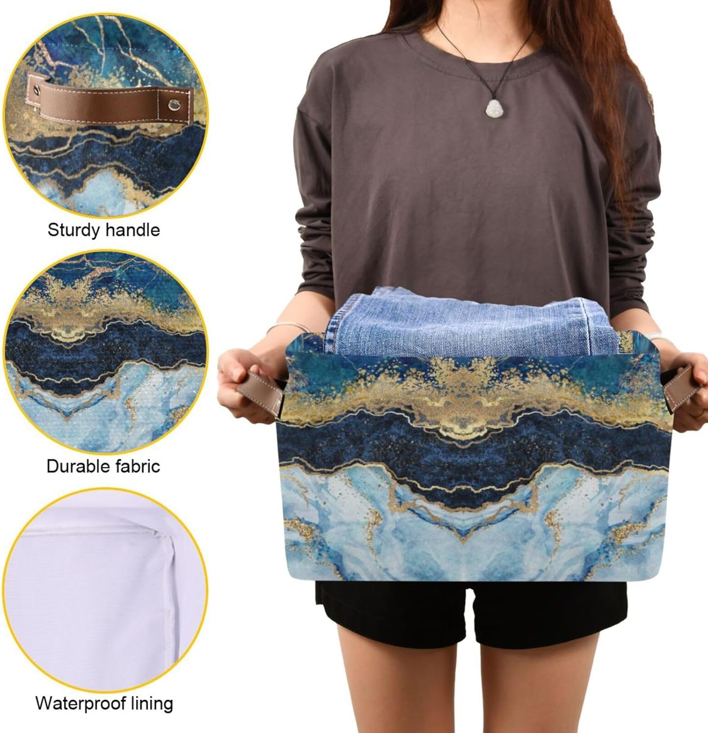 susiyo Foldable Storage Bins Storage Cubes Bin Baskets for Shelves with Handles Decorative Fabric Storage Baskets for Organizing Shelves Closet Nursery Home Toy,Blue Marble