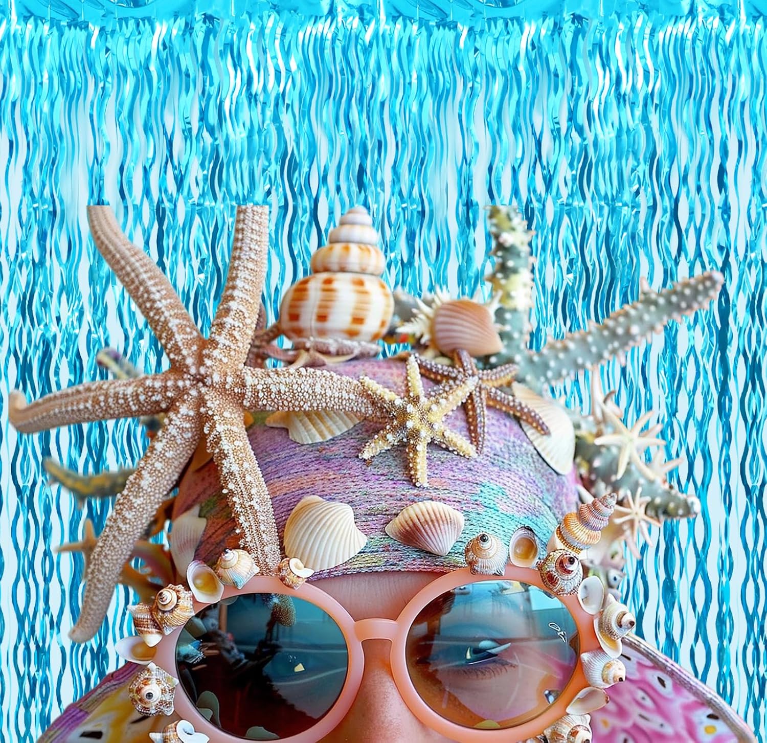 - Package Includes:3 pack wavy light blue foil fringe curtains,3.2 ft x 6.5 ft each,suitable for hanging on a door or coverage a wall fully