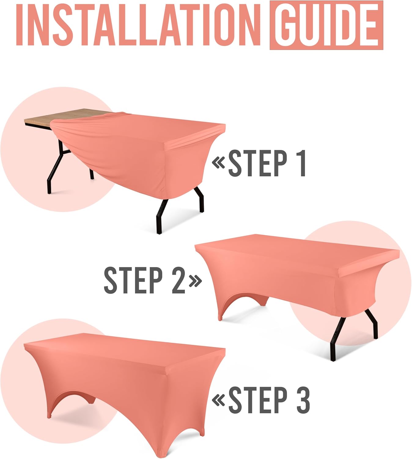 - Design: The 6-foot tablecloth always fits and fits perfectly. The 2-way stretch spandex table cover is designed with reinforced leg pockets for the table legs to give it a tight and professional look, and your table cover won't slip or expand again because of this special design. The 6-foot tablecloth fits a table measuring 72L x 30W x 30H Inch