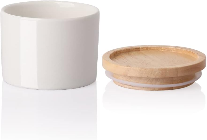 Sweejar Kitchen Canisters Ceramic Food Storage Jar, Stackable Containers with Airtight Seal Wooden Lid for Serving Ground Coffee, Tea, Sugar, Spice and More - 5 Fl Oz(White)