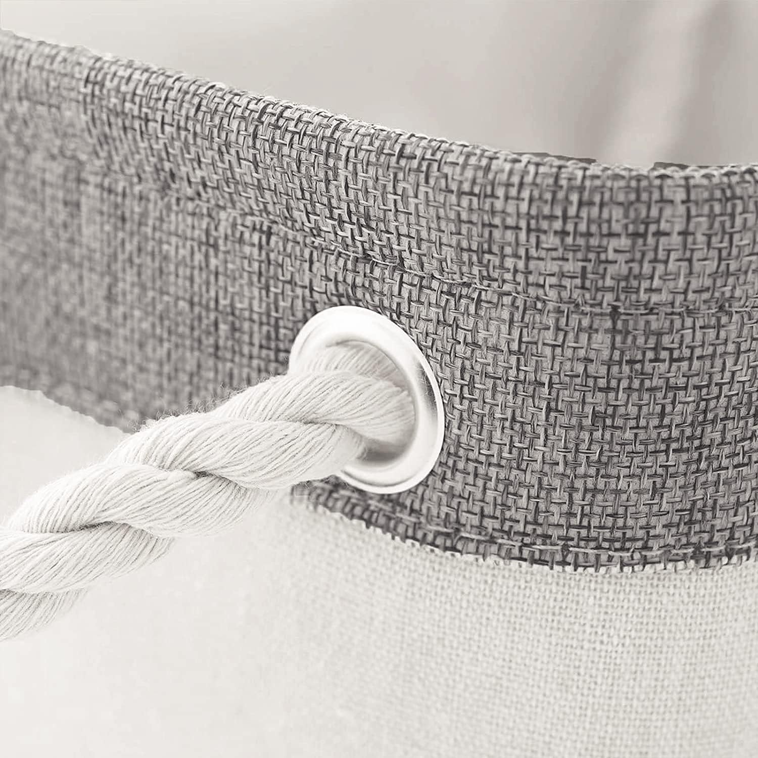 - Made of linen and thicken environmental EVA for reliable performance. Dimensions (each): 11.8 (L) x 7.9 (W) x 5.2 (H) inches.This collapsible basket set provides attractive, lightweight storage. Saves space when not in use and collapses flat for easy storage. It helps keep a room looking neat and tidy. The neutral color combination fits most dรฉcor while the two side carry handles make it easy to carry
