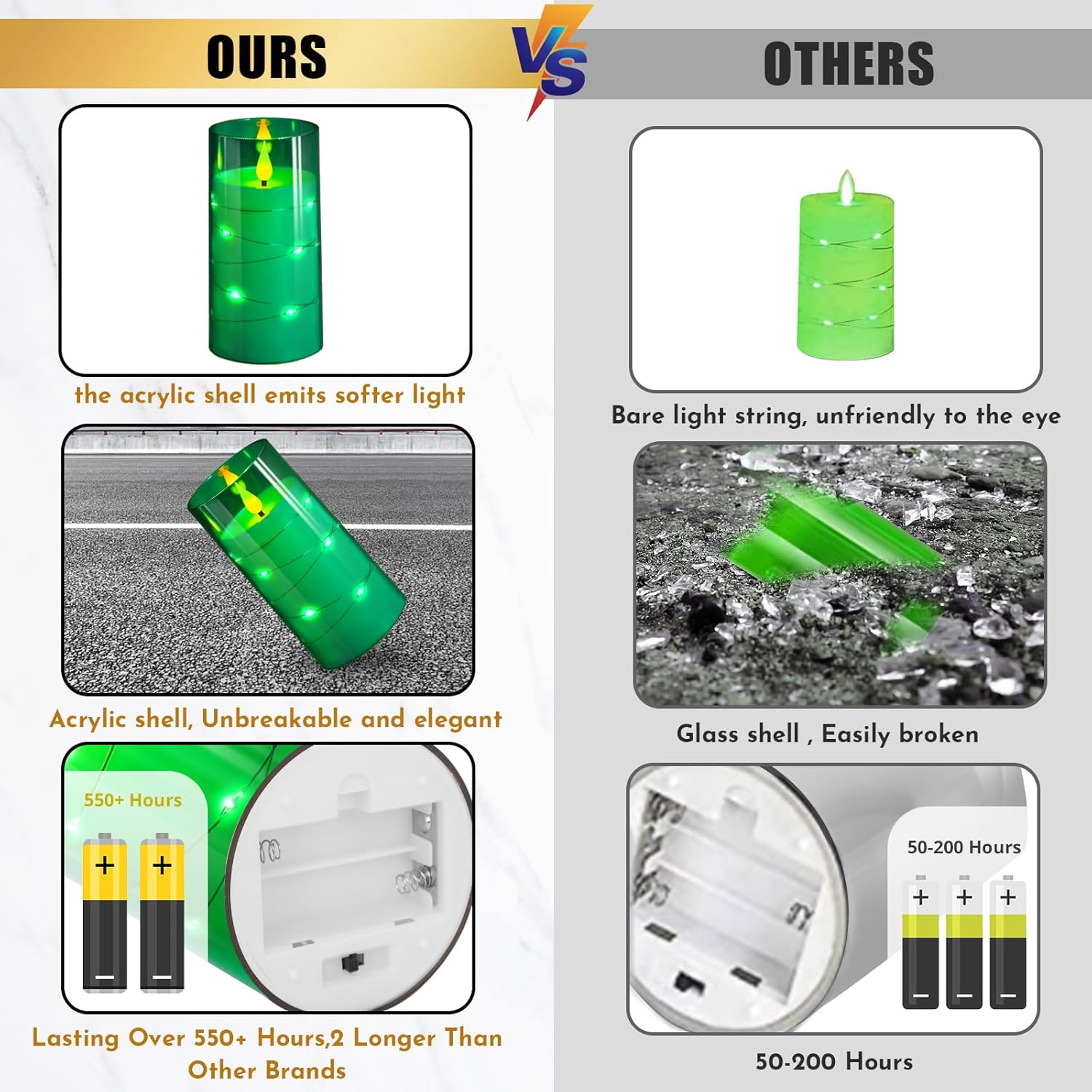 NURADA Flickering Flameless Candles: Built-in Star String Acrylic Battery LED Pillar Candles Candles with Remote and Timer for Home Party Weddings Christmas Halloween Decor -Green 2 Pack
