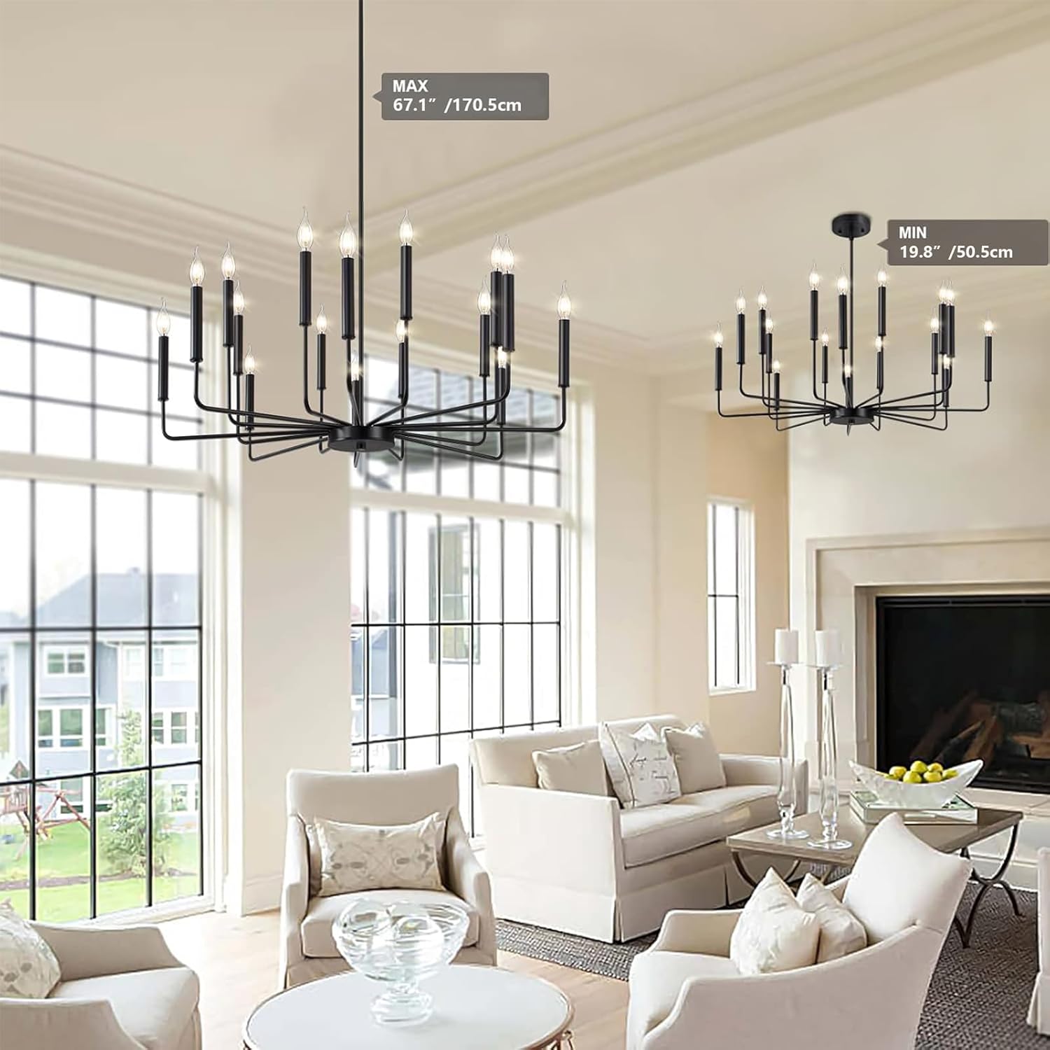 - Modern Fashion Design: A classy candelabra chandelier with different lengths of arms and gold matte finish which allows you to clean easily. The appearance of 16 uneven arms look genuine and novel. The whole minimalist design is classic but not rigid. With this simple and retro look can upgrade your space that is elegant but generous