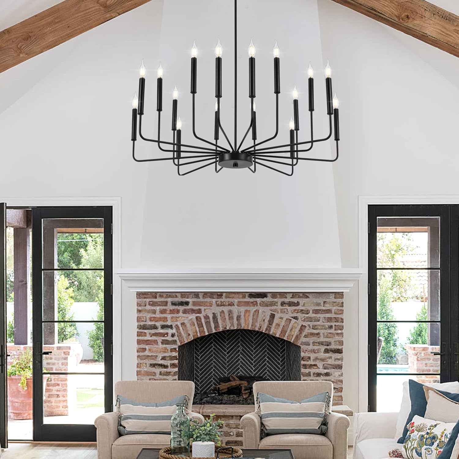 Modern Black Farmhouse Chandeliers, 16-Light Industrial Metal Chandelier Lighting, Classic Candle Hanging Pendant Light Fixtures for Kitchen Island, Living Room, Dining Room, Stair