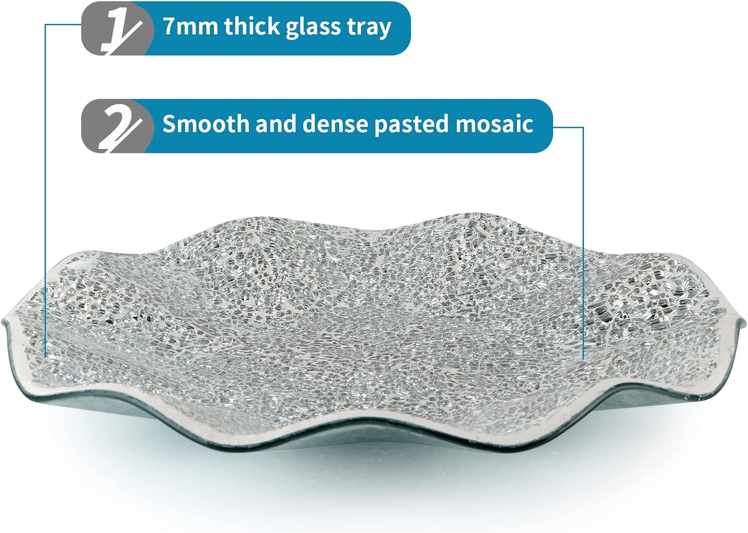 MDLUU Mosaic Centerpiece Tray, 11.6" Decorative Glass Plate, Home Decor Glass Bowl for Dining Room Table, Coffee Table, Gift (Silver)