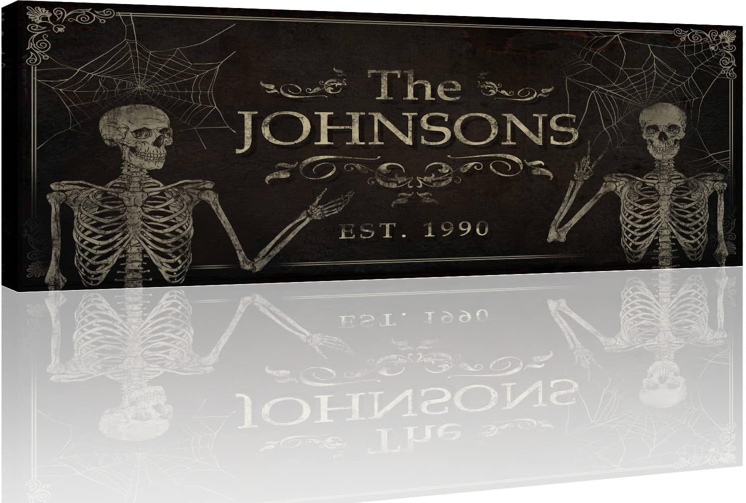 Tailored Canvases Gothic Family Wall Decor - Personalized Grunge Vintage Skeleton Room Decor for Home, Halloween Lovers, Men & Women for Bedroom, Living Room - Goth Spooky, Custom Couple Name, 48"x16"
