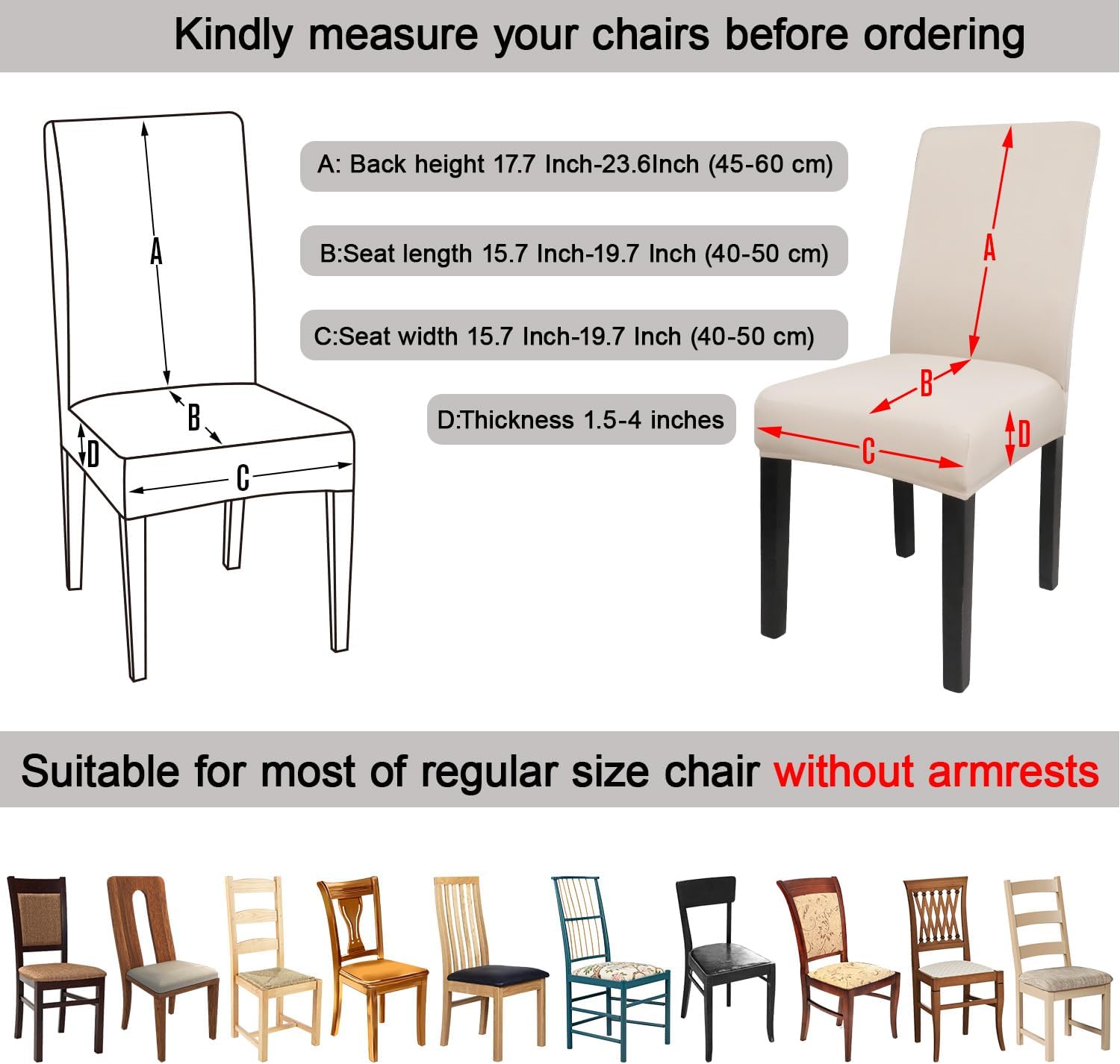 - 【High Quality of Chair Cover】- This dining chair slipcovers are made of polyester blend and stretchy spandex fabric, soft, comfortable and wrinkle resistant, no ironing required;Stretchable Material,stretch that recovers quickly,secure fit with sewn-in elastic hem.