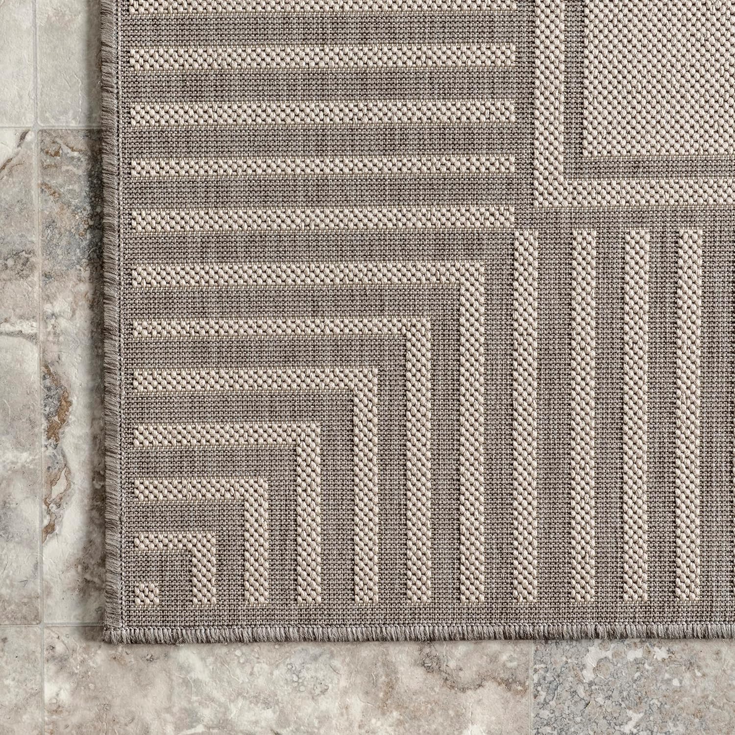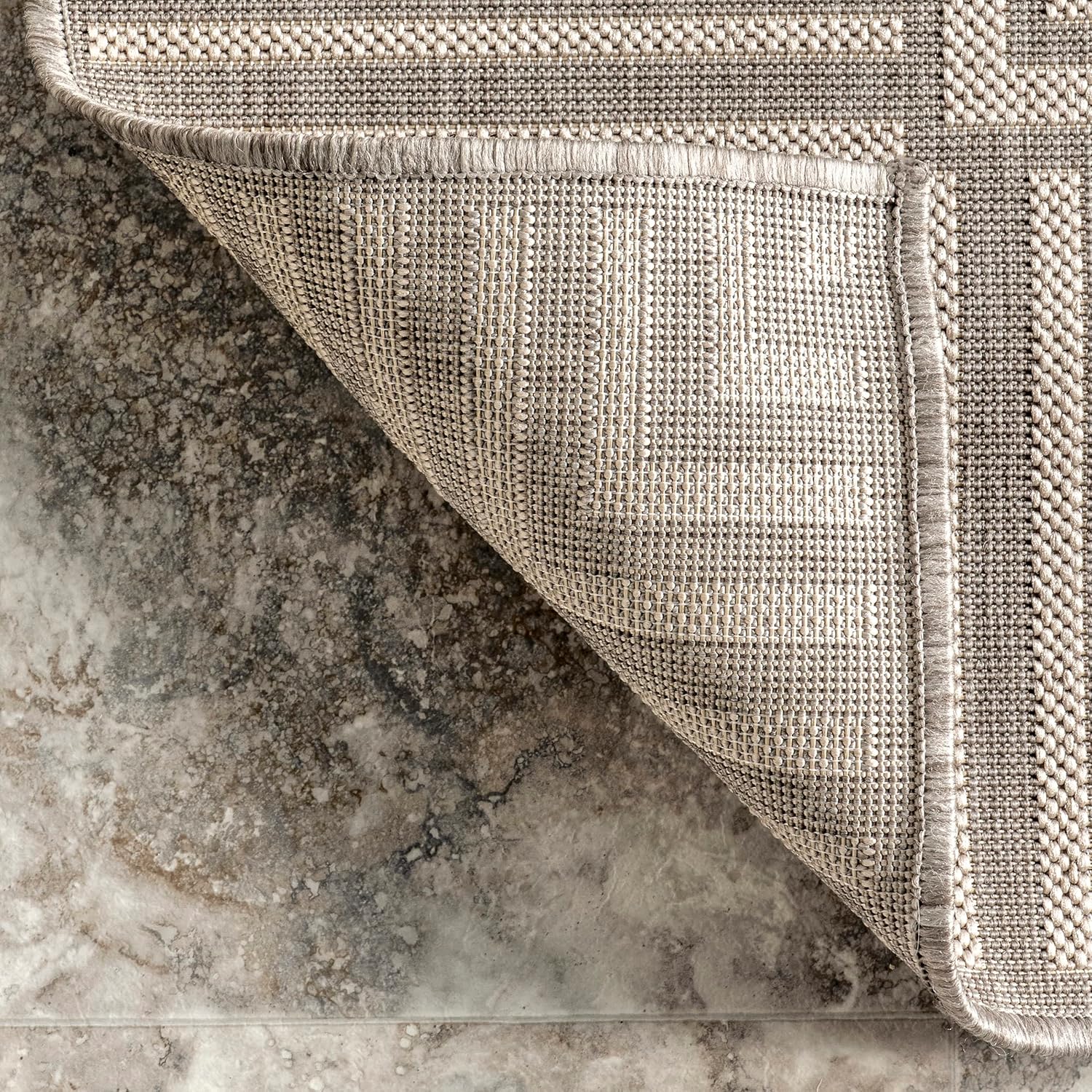 nuLOOM 2' x 8' Outdoor Area Rug, Casual Design with Striped Border, Stain Resistant, Highly Durable, for Patio, Balcony, Bedroom, Living Room, Dining Room, Bathroom, Light Grey