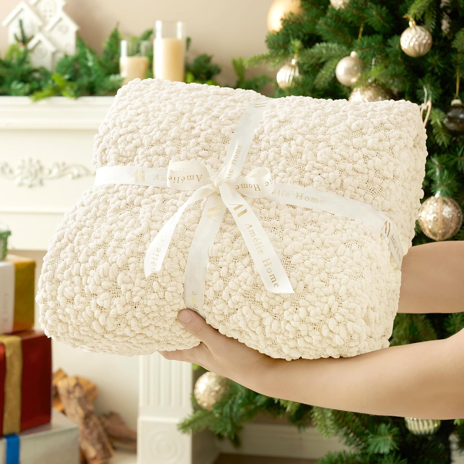 Amélie Home Knit Throw Blanket with Tassels for Couch, Luxury Boho Throw Blanket for Summer Ivory, 50"x60"