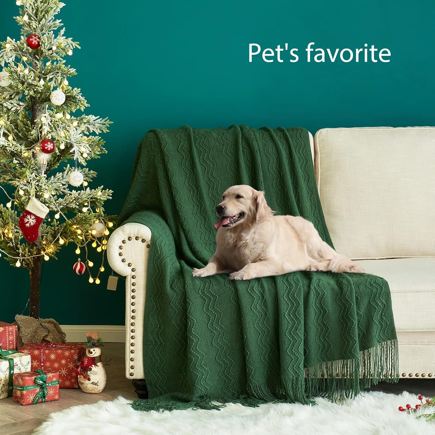 - MIULEE THROW BLANKET: 50"x60" dark green blanket is made of cozy weave fabric which has good comfort and breathability with cute tassels