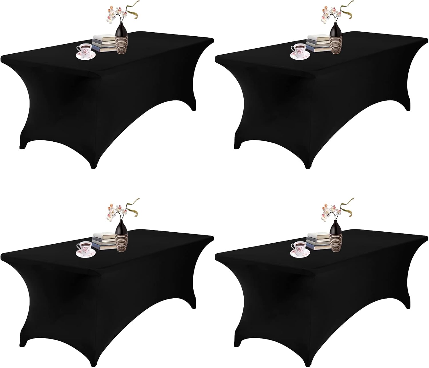 4Pack Spandex Waterproof Table Covers 8ft,Spandex 8ft Waterproof Table Cover for Party,Wedding, Banquet, and Events(Black)